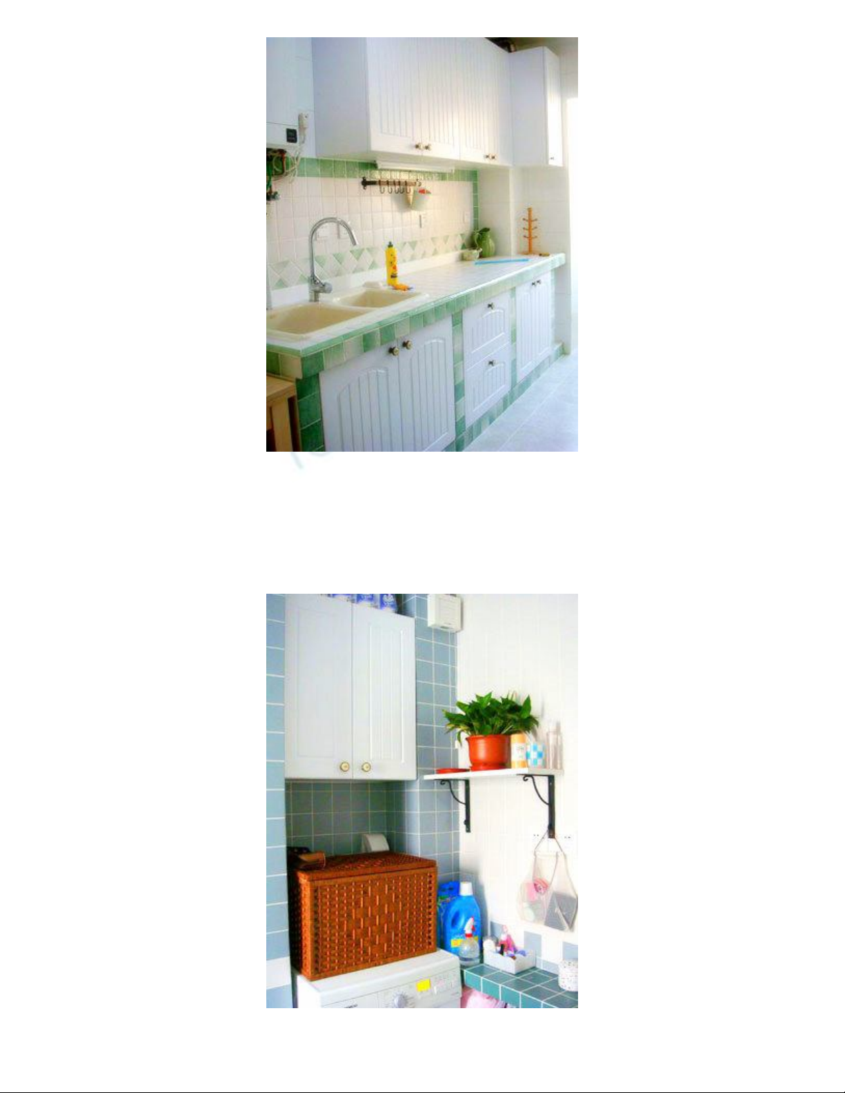 Tại phòng bếp, bạn cũng có thể sử dụng các loại gạch men trang trí màu xanh