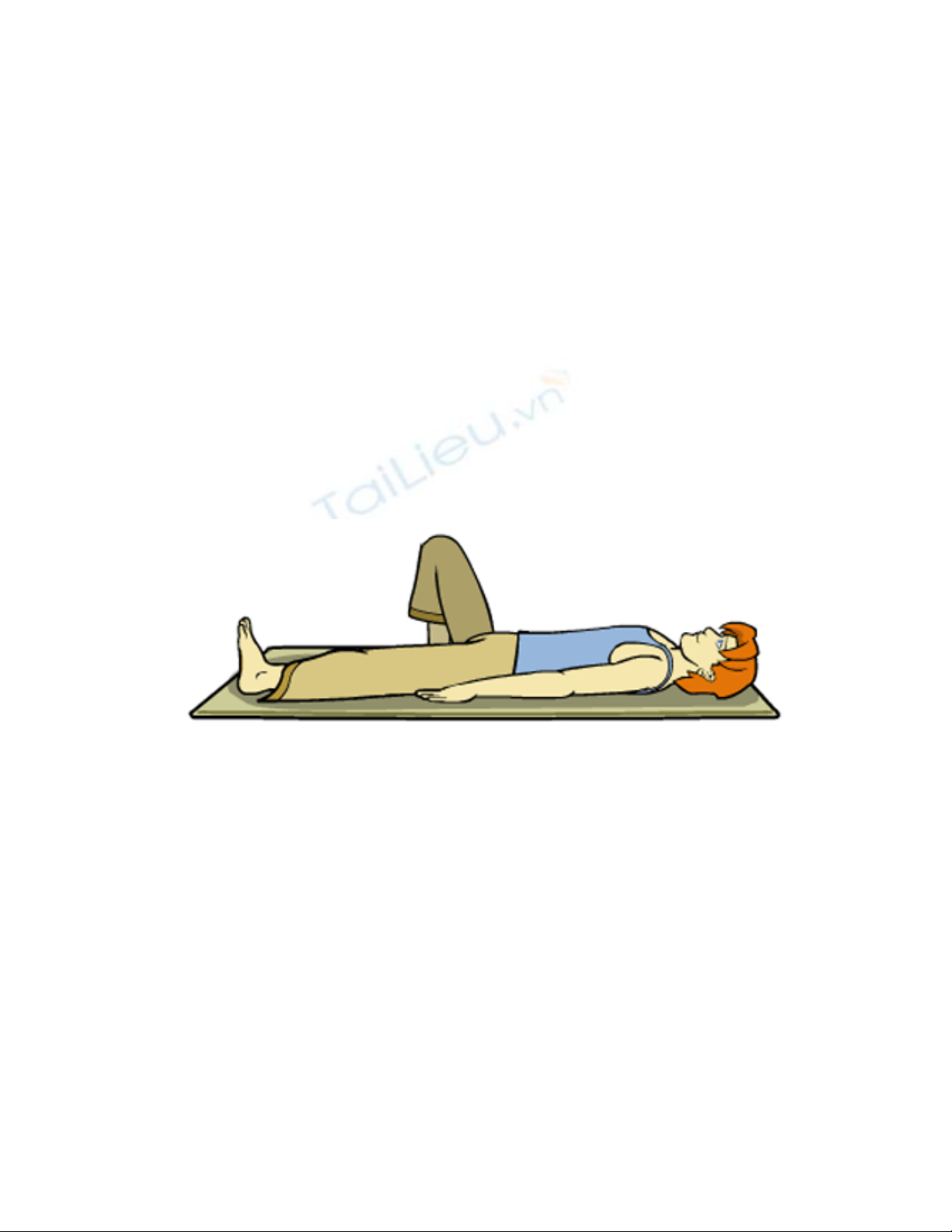Nằm ngửa trên chiếu. Hai tay áp sát bên sườn. Chân phải co và đặt thành một góc