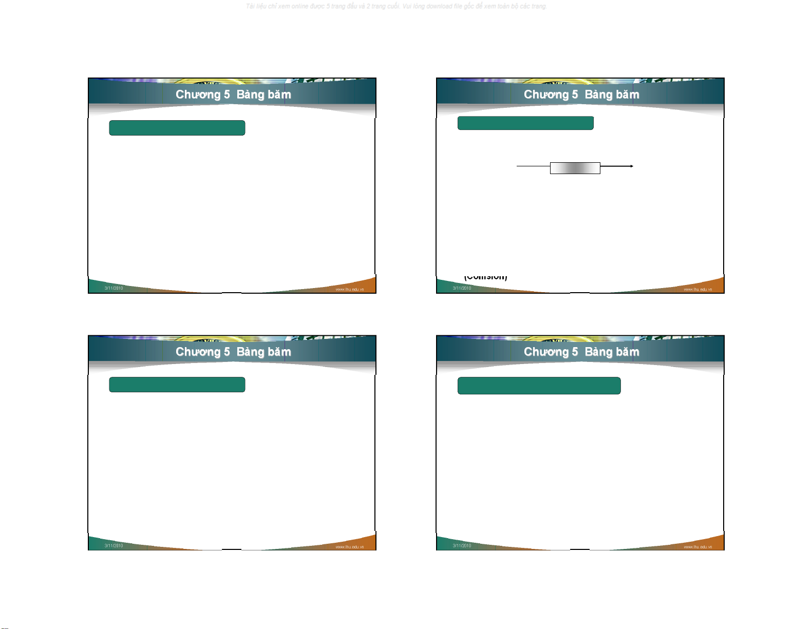 Khi hàm băm 2 khoá vào cùng 1 địa chỉ gọi là đụng độ