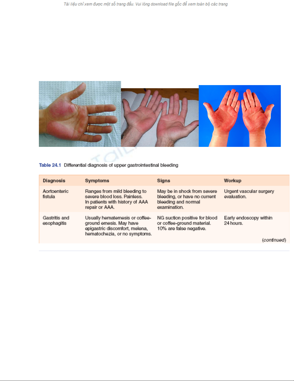 V. Ch n đoán phân bi t: B ng 24.1 và 24.2 mô t nguyên nhân c a ch y máu tiêu hoá trênẩ ệ ả ả ủ ả