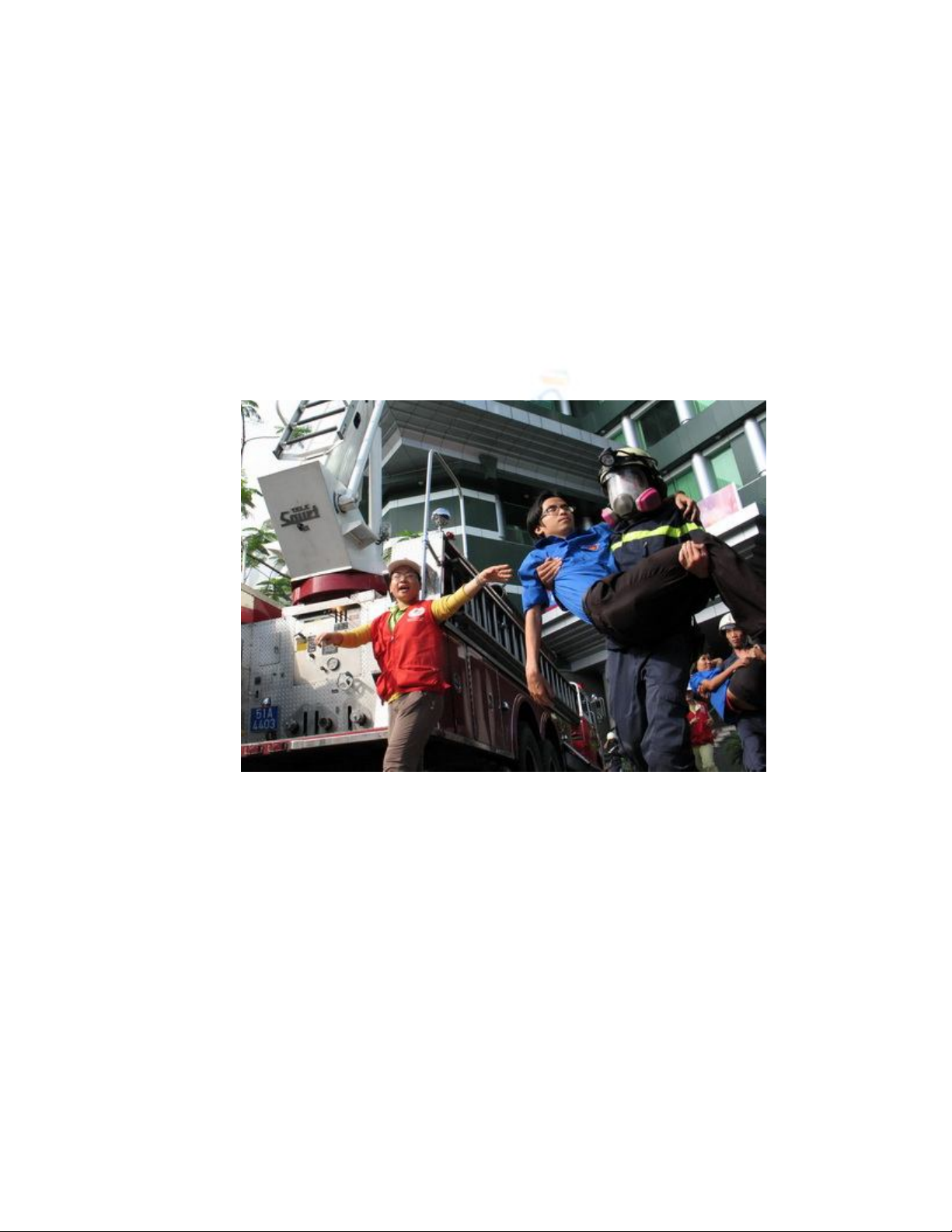 thoát nạn. Tìm cách ra lan can tòa nhà, ra tín hiệu cho mọi người dưới mặt
