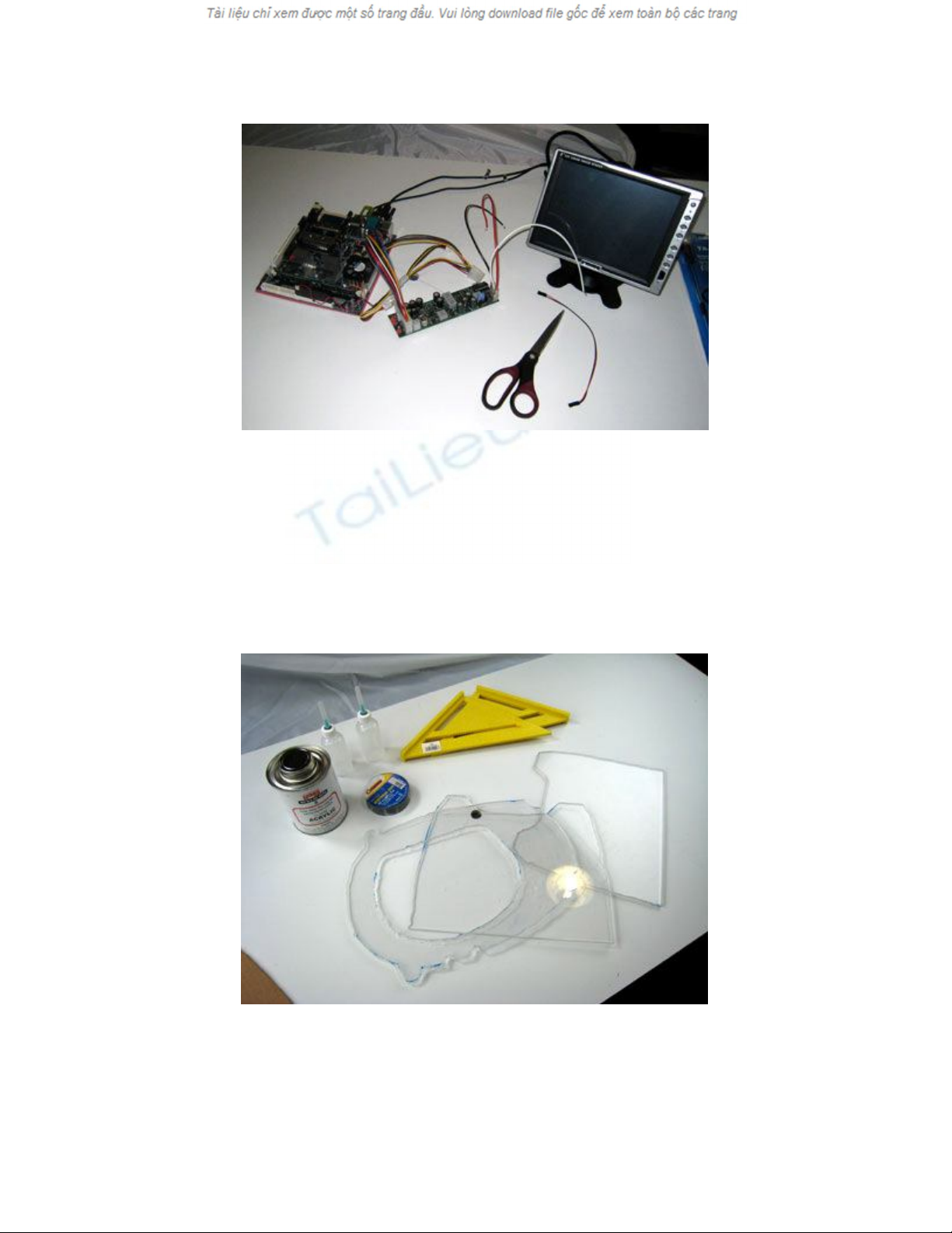 Một số dụng cụ như thước, keo dán, các mảnh nhựa