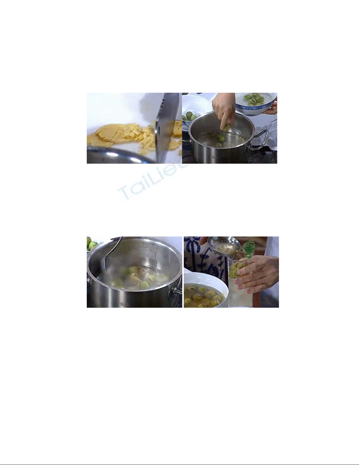vào. Vớt sấu từ tô cho vào nồi nấu sôi lên.