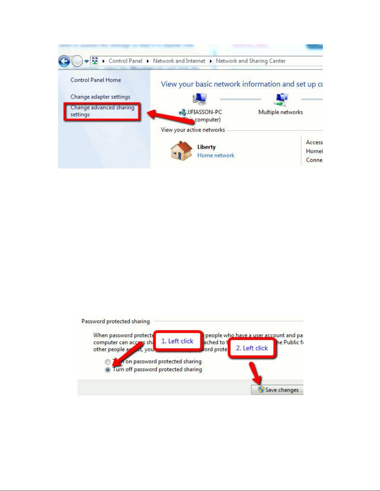 Network and Sharing Center. Chọn Change advanced sharing settings phía