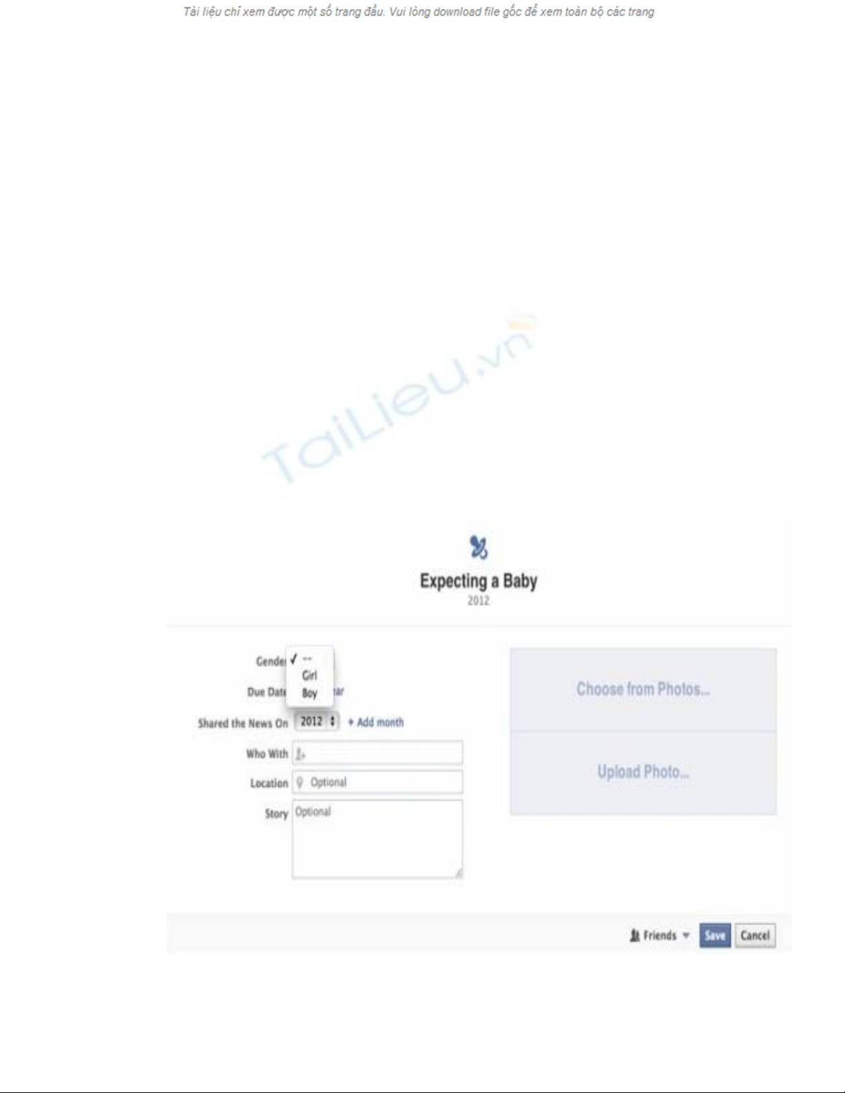 mẹ khi mang thai…) để bạn bè có thể cùng chia sẻ niềm vui và hồi hộp chờ