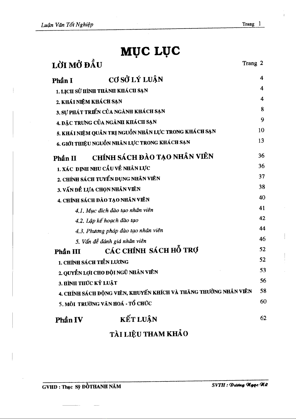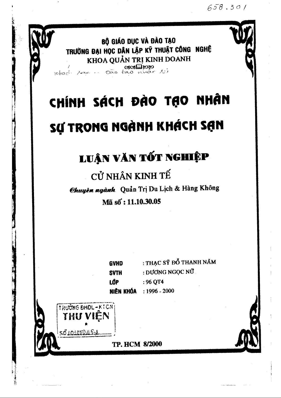 Luận văn:Chính sách đào tạo nhân sự trong khách sạn