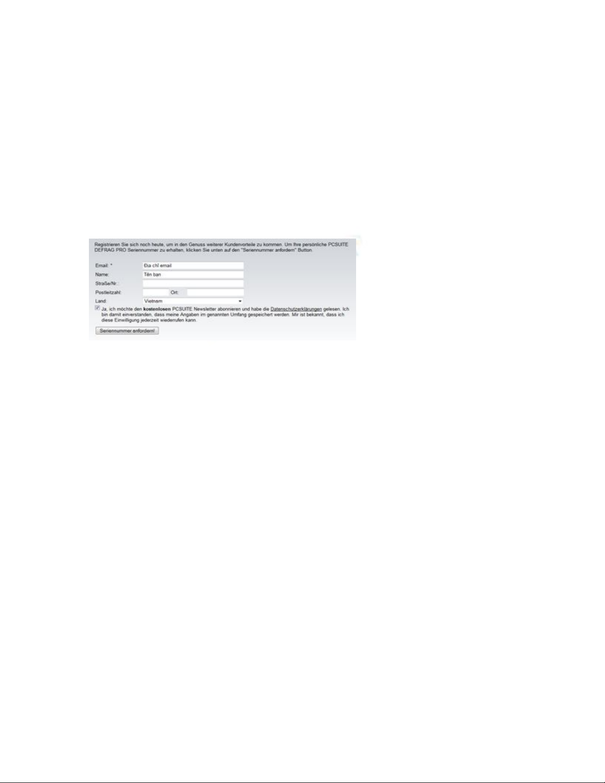 nút Seriennummer anfordern! để gửi yêu cầu:
