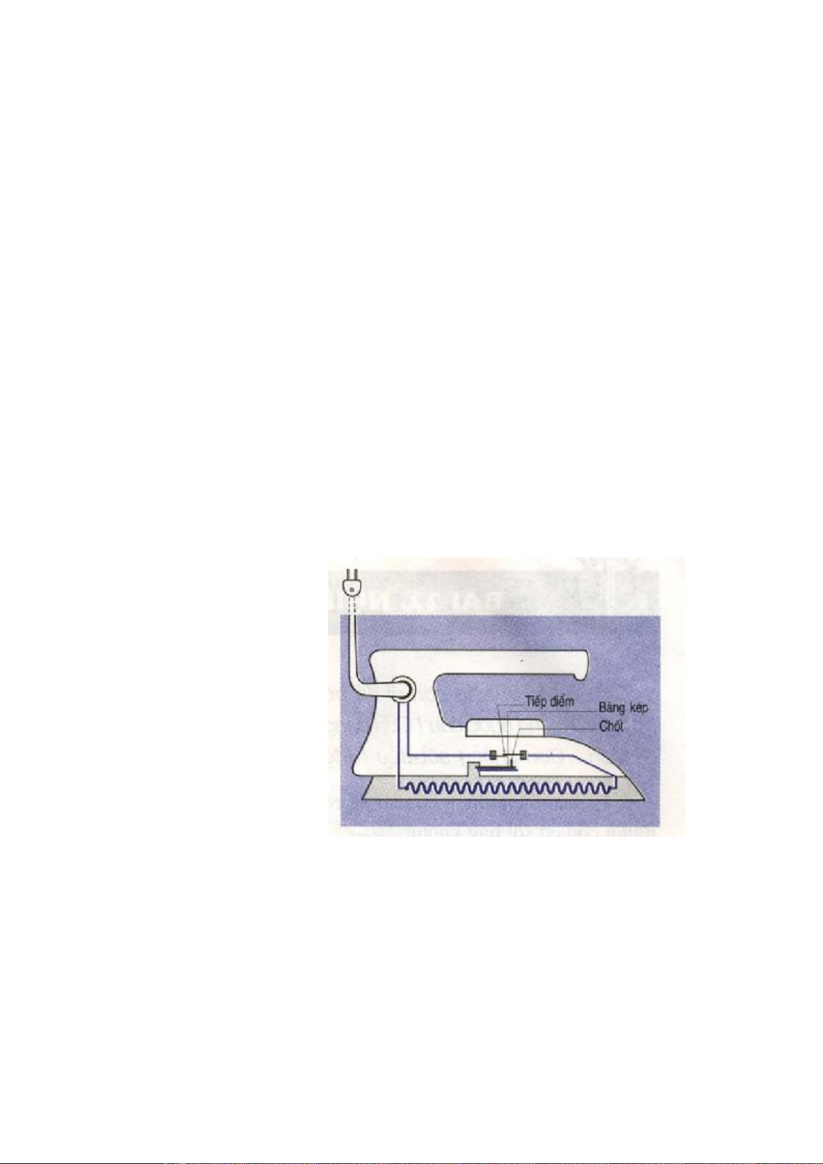 Trong bàn là có rơle nhiệt, phần tử cơ bản của rơle nhiệt là một thanh kim loại kép,