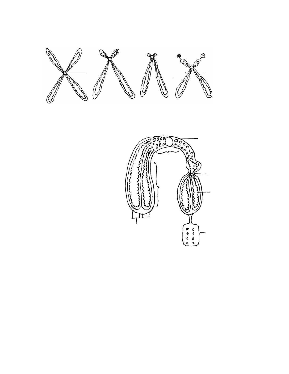 Hình 10.1. Vị trí của tâm động trên nhiễm sắc thể