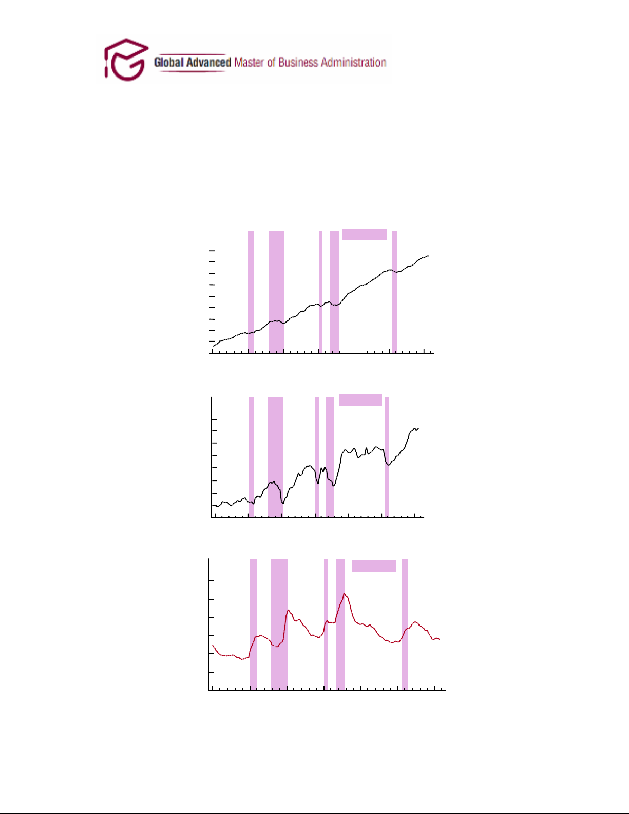 hình 1 biểu thị GDP của Mỹ từ năm 1965. Phần có mầu tối chỉ ra những thời kỳ suy thoái.