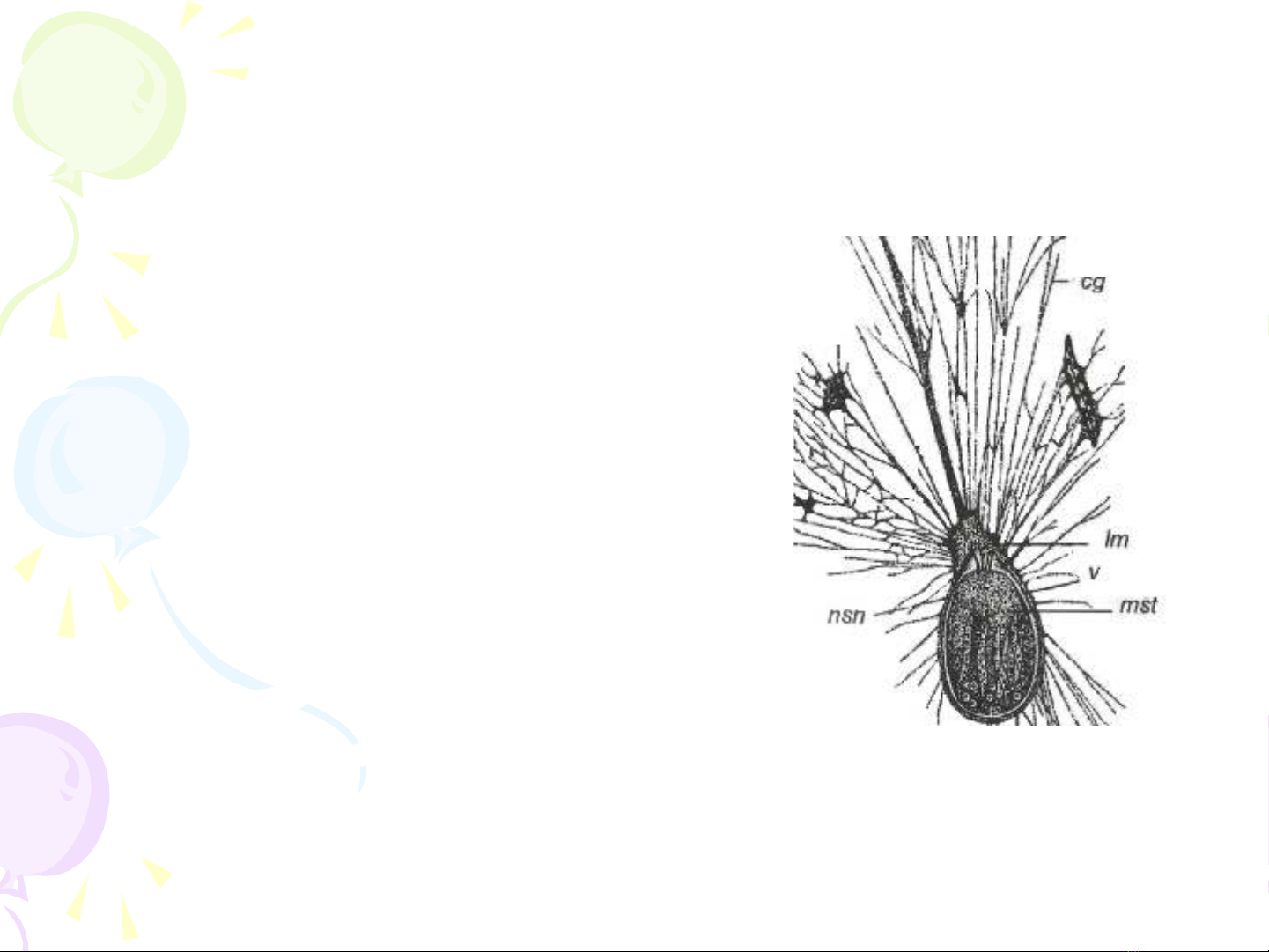 - Tế bào = chất nguyên sinh, bên trong chứa một hoặc hai nhân, ngoài cùng có màng bao