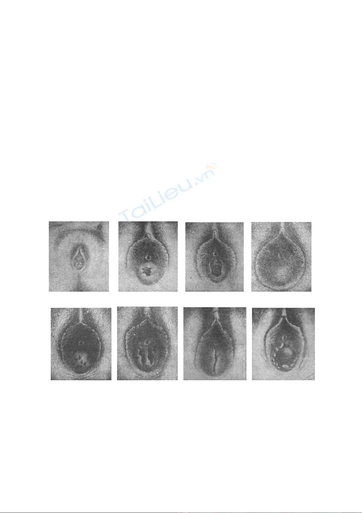 môi lớn nhão để lộ môi nhỏ, màng trinh teo lại. Ðẻ nhiều lần màng trinh bị hủy còn sót lại