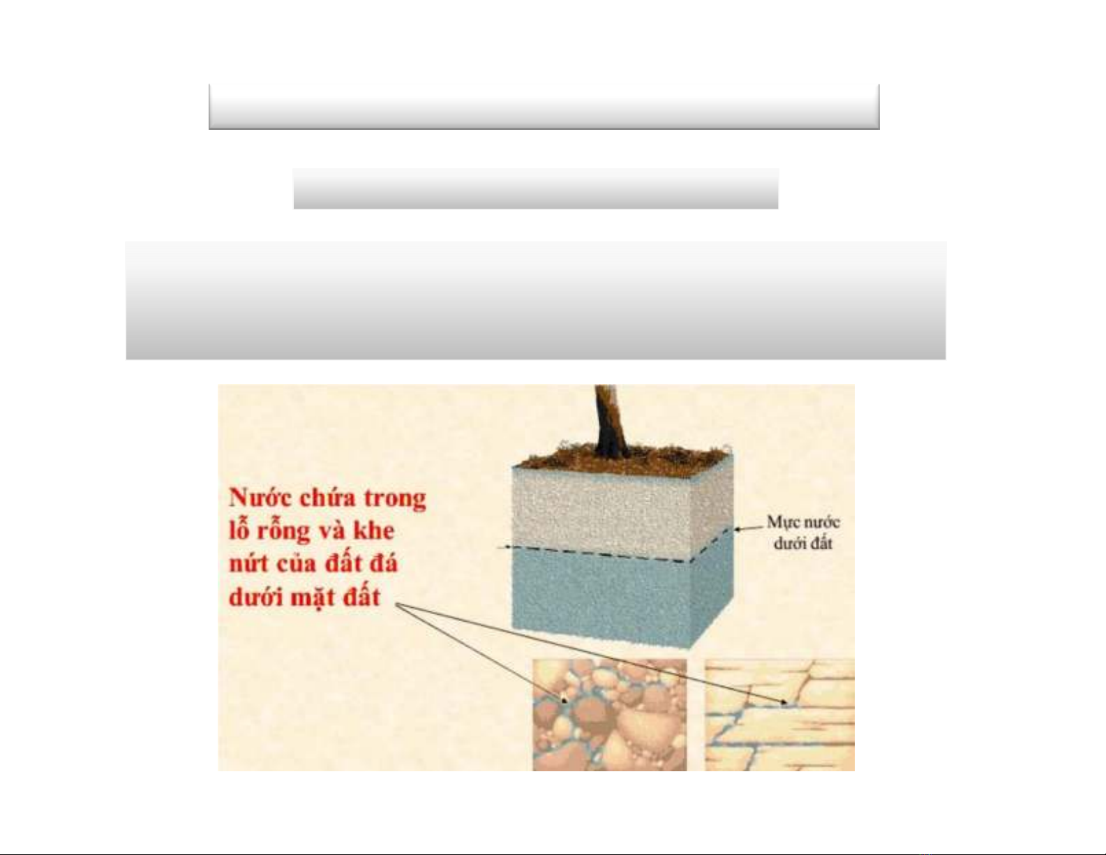 Nướcdướiđất: tấtcảcác loạinước(tồntại các dạng khác nhau) ph/bốtrong các lỗ