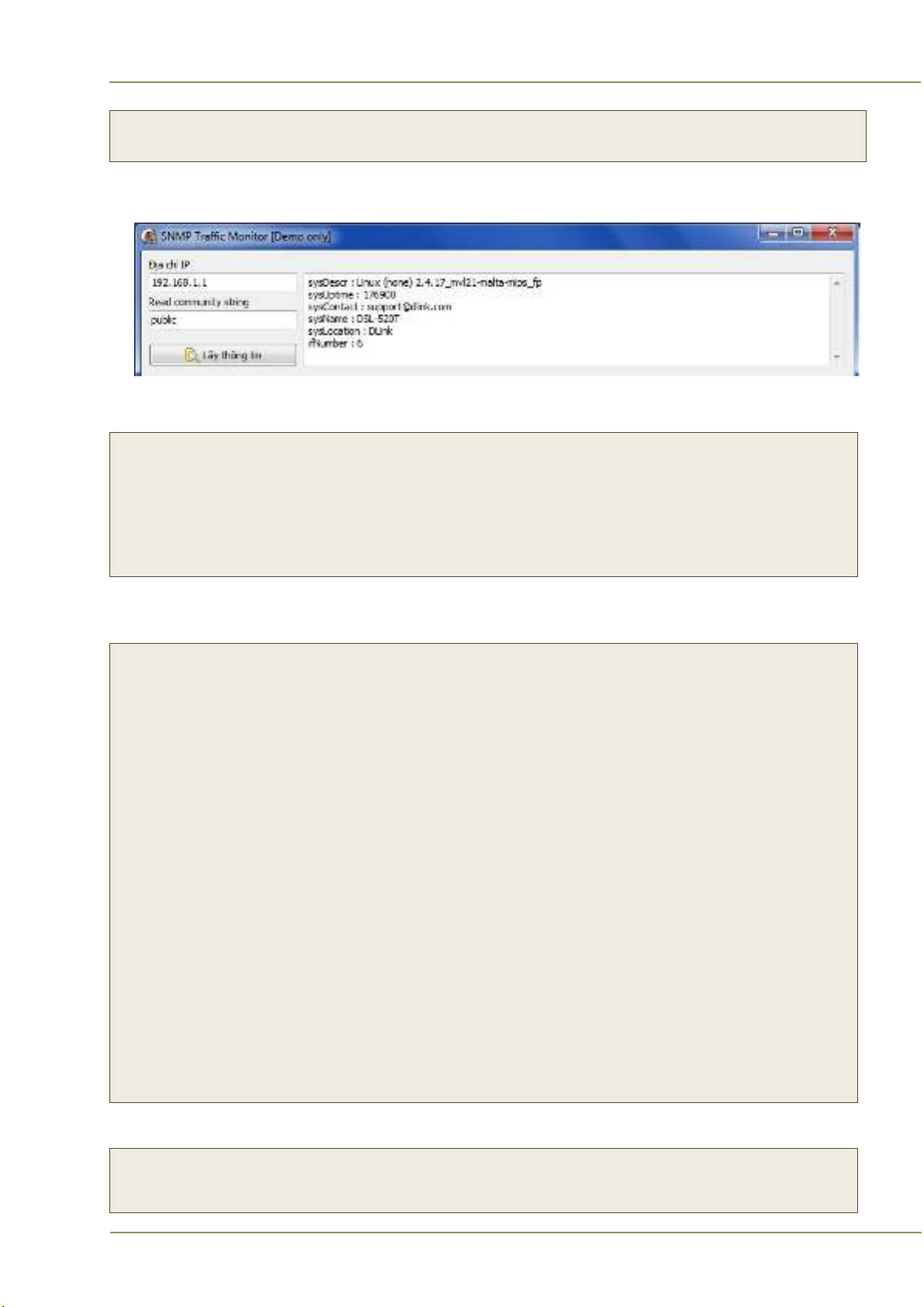 Sau khi nhập I P và community string, nhấn nút “Lấy thông tin” để phần mềm lấy về các thông tin của