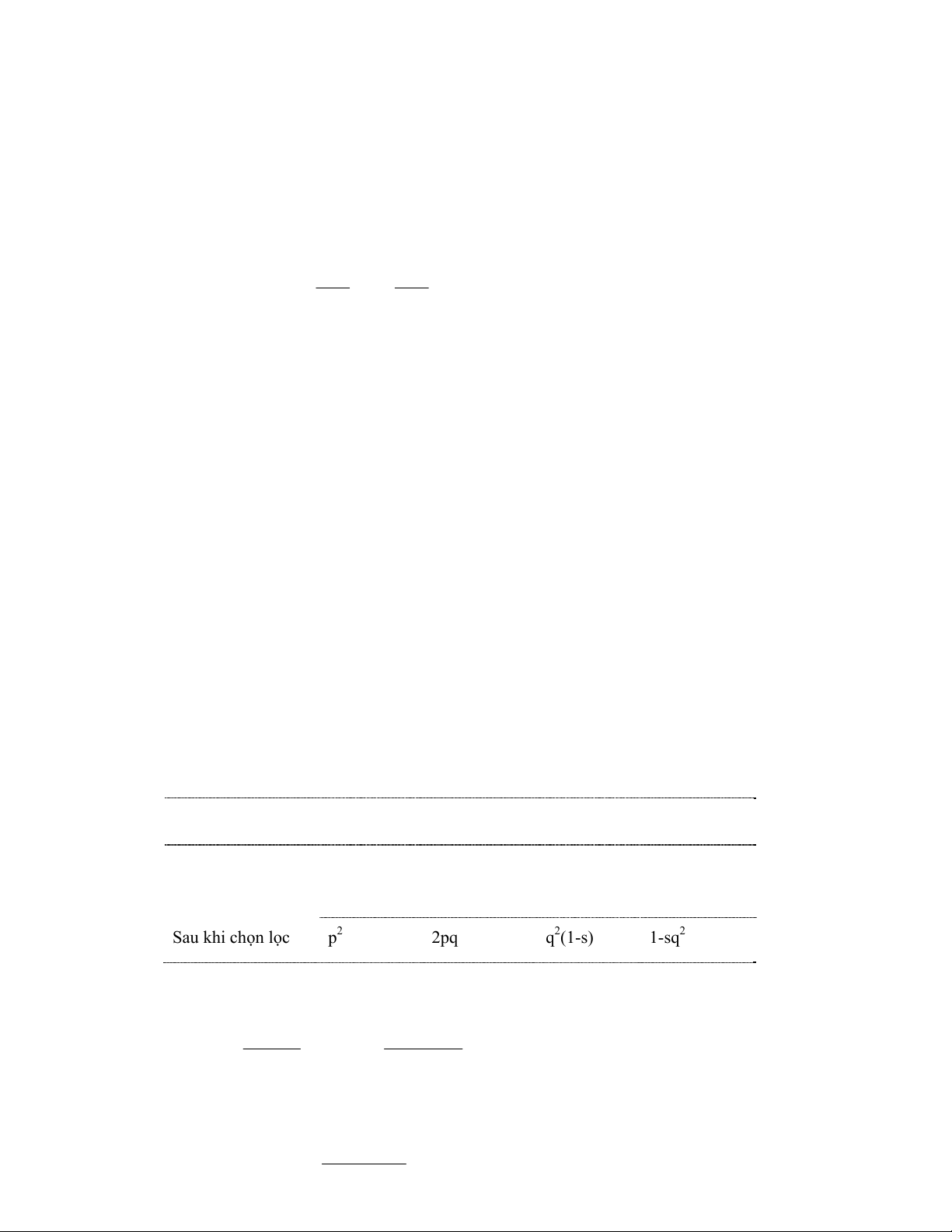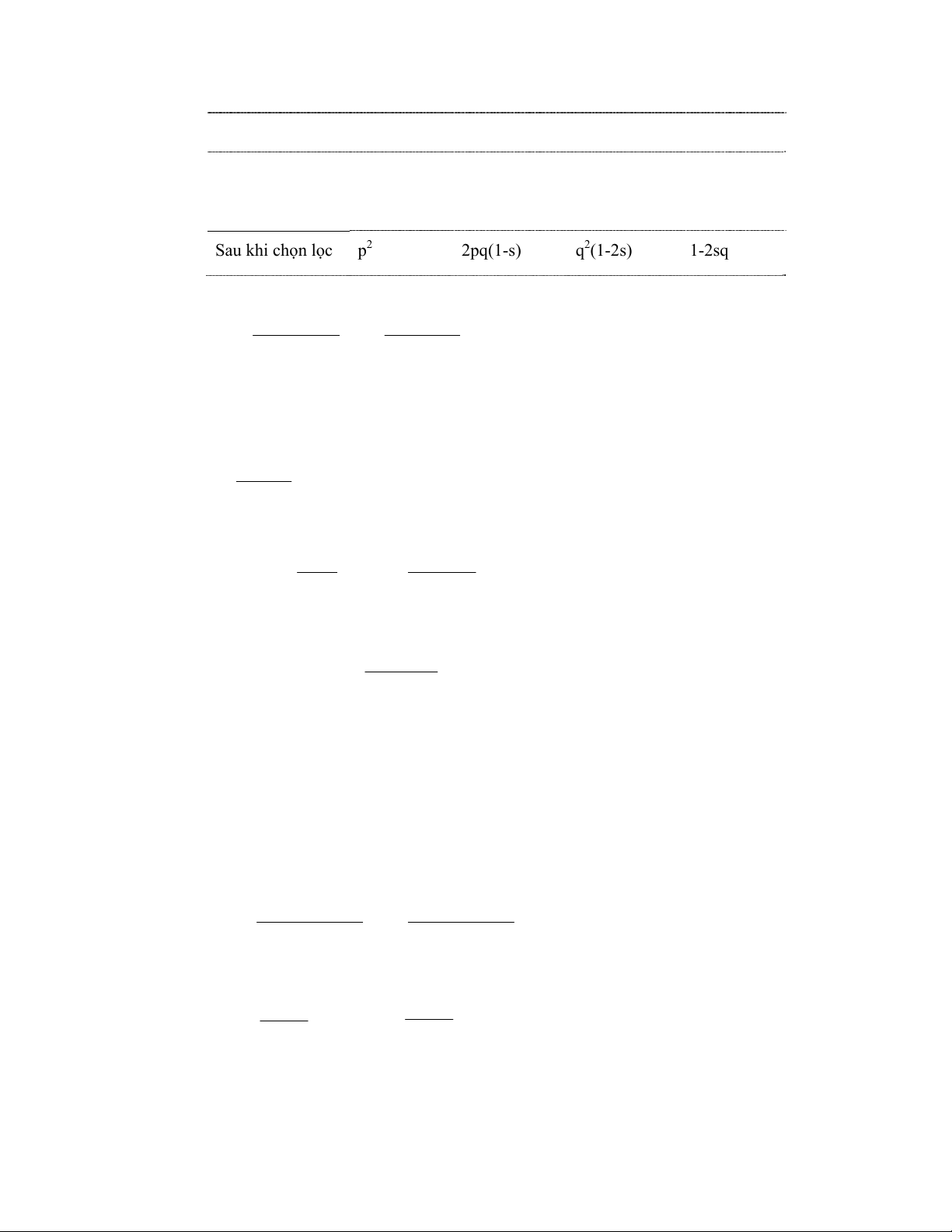 Sau khi chọn lọc p2 2pq(1-s) q2(1-2s) 1-2sq