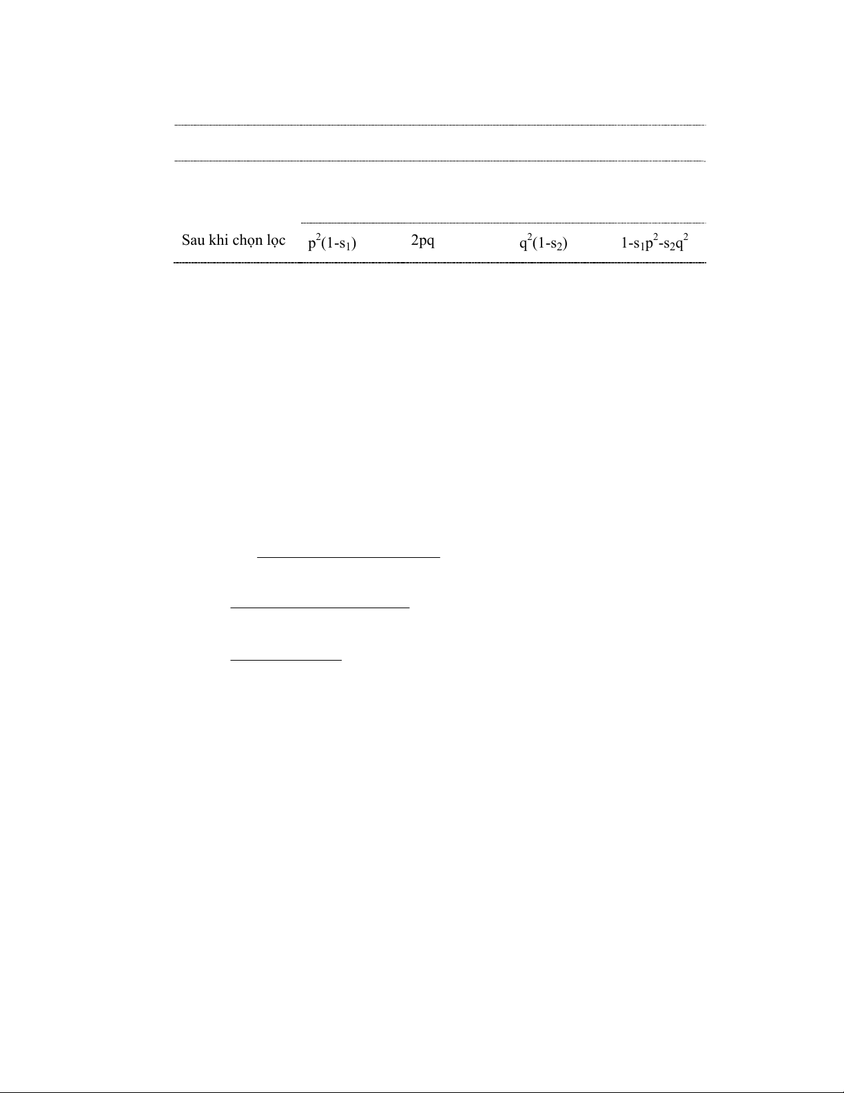 Sau khi chọn lọc p2(1-s1) 2pq q2(1-s2) 1-s1p2-s2q2