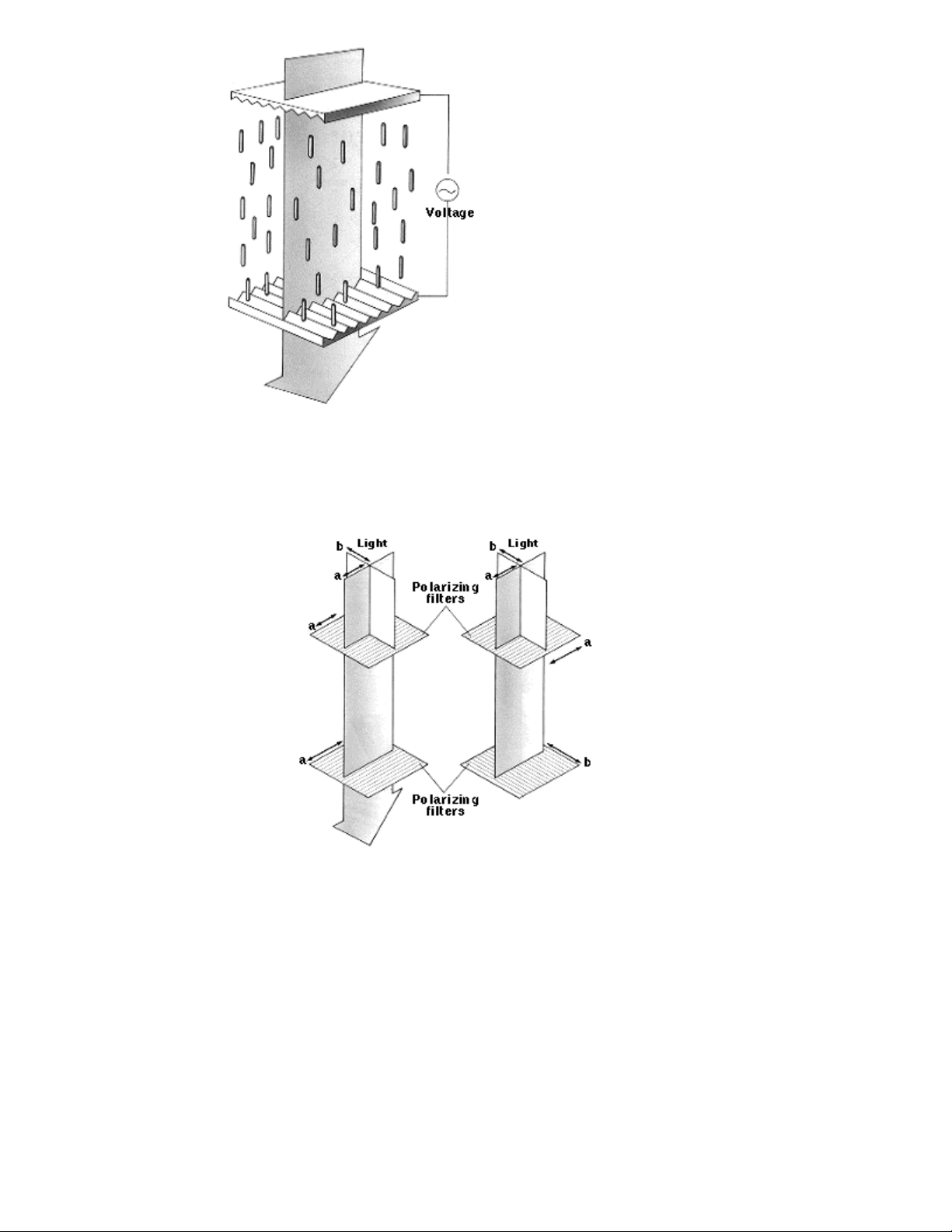 cực) . Khi có điện áp đặt vào ánh sáng bị chắn và màn hình