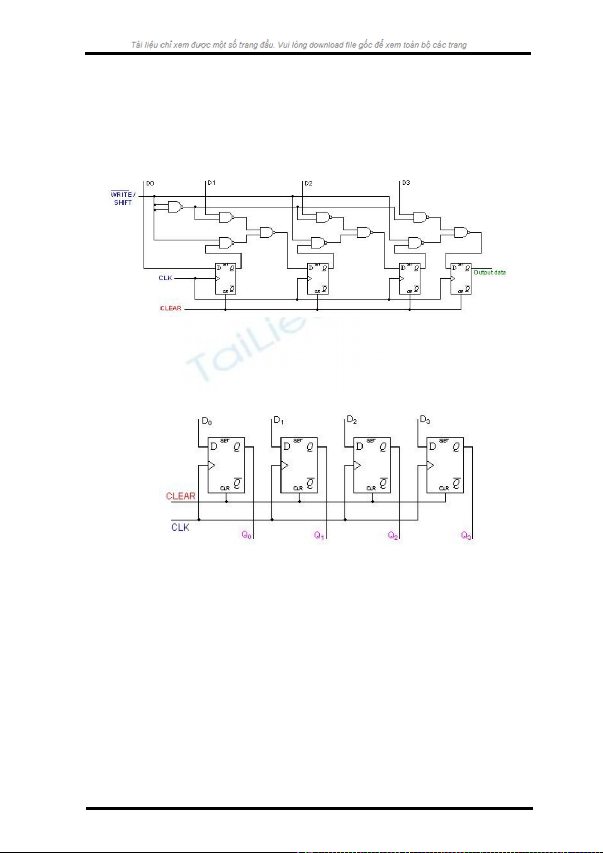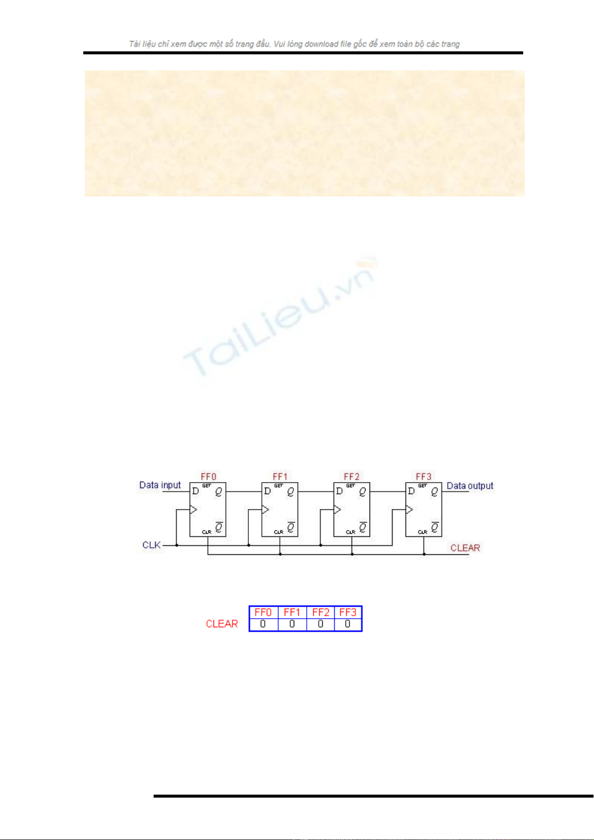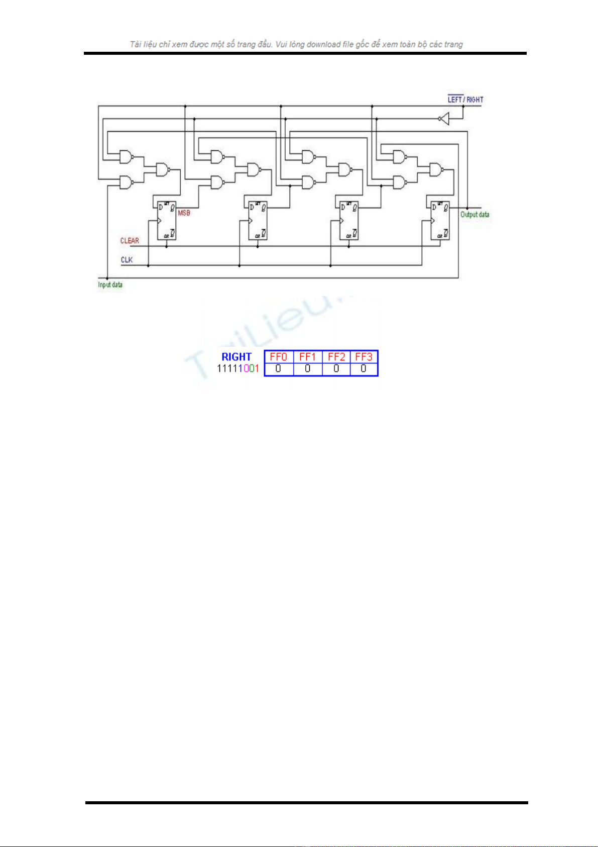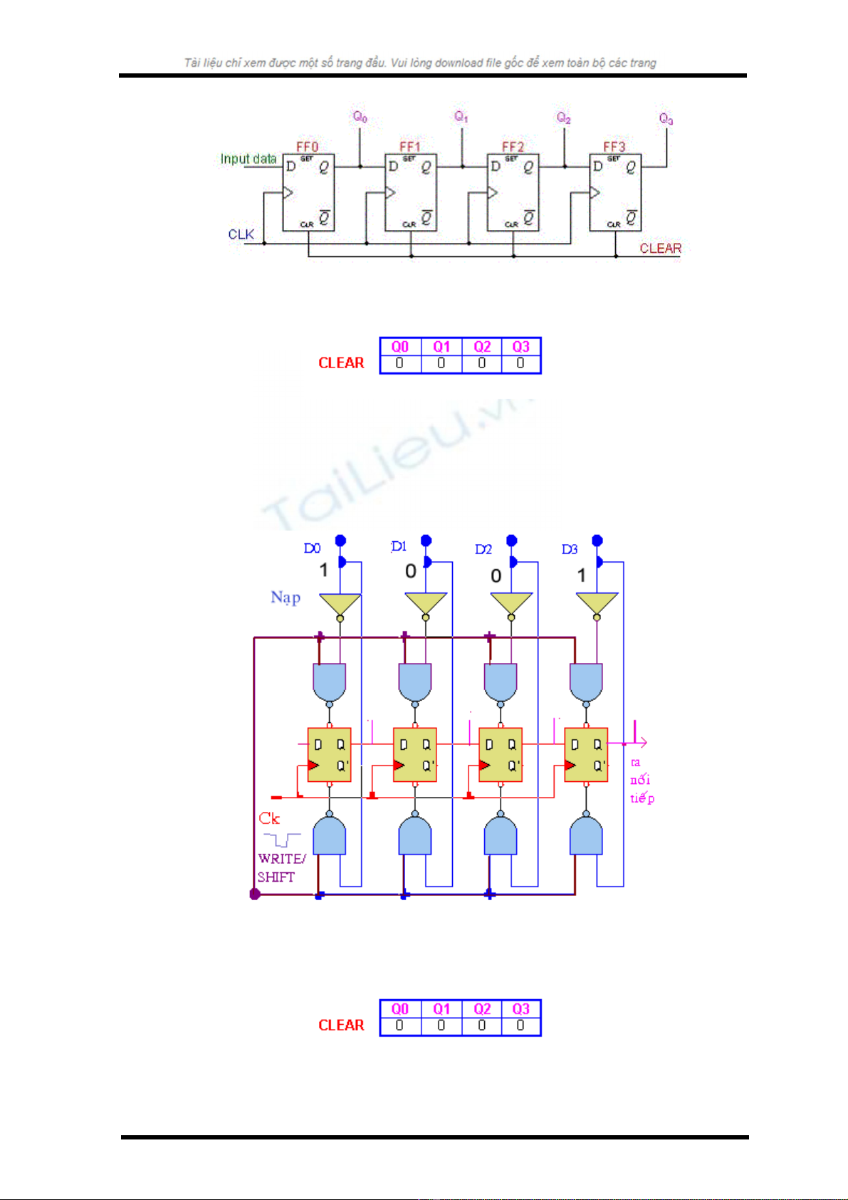 Thanh ghi, tr c h t đ c xoá (áp xung CLEAR) đ đ t các ngõ ra v 0. Dướ ế ượ ể ặ ề ữ