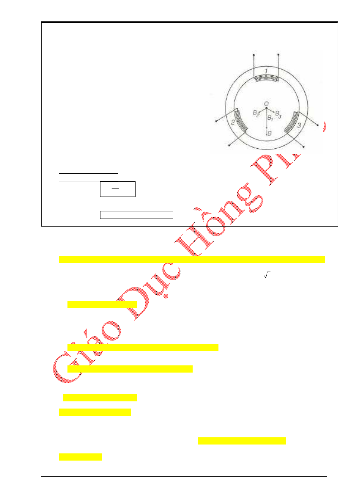 Câu 25: Trong động cơ không bộ ba pha, khi dòng điện qua cuộn dây 1 cực đại và cảm ứng từ do cuộn dây này tạo ra có độ