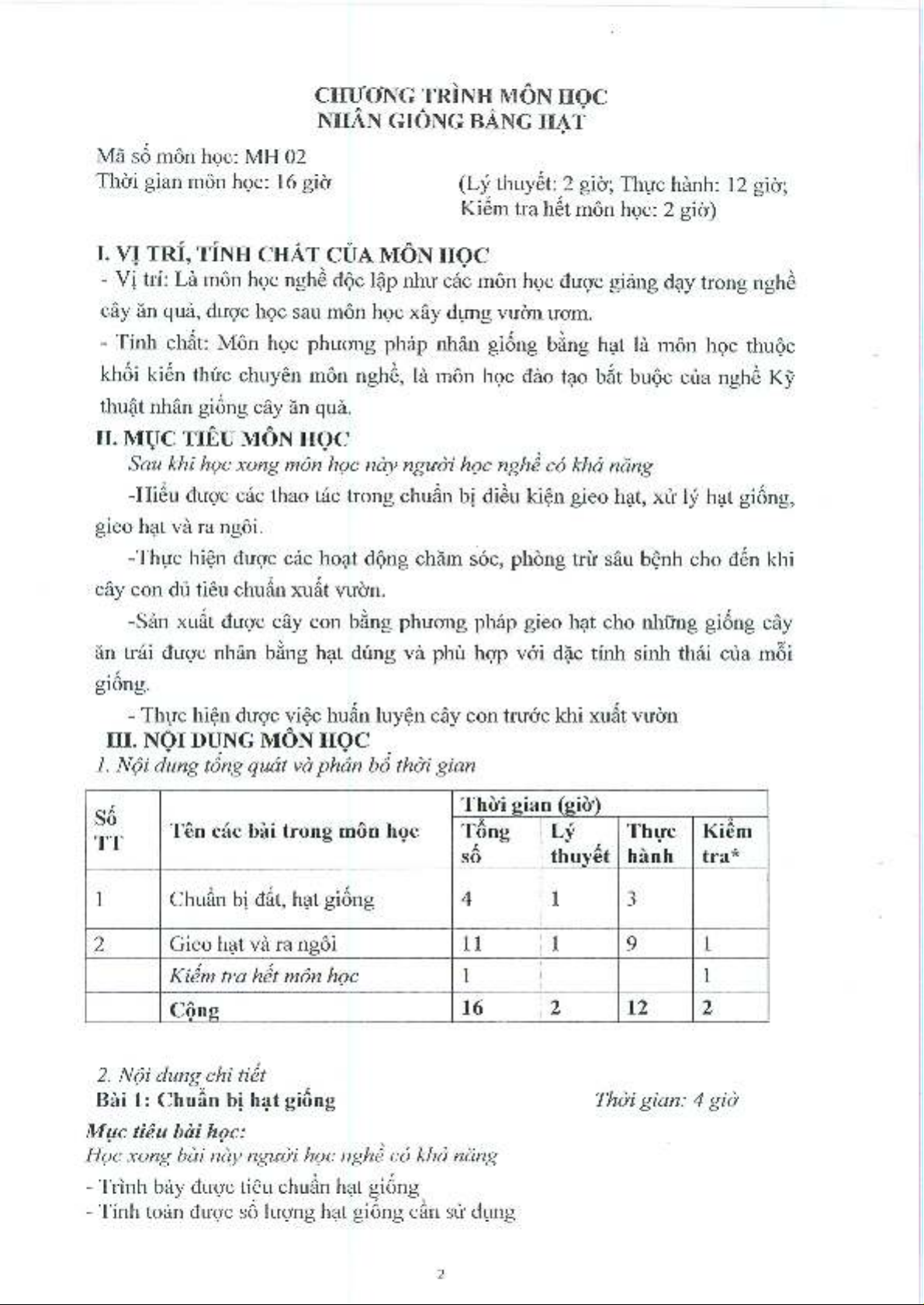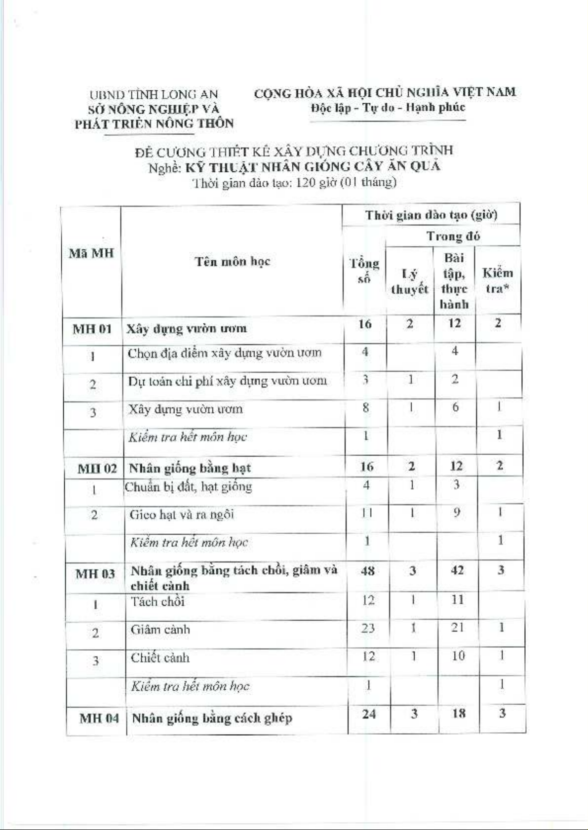 Chương trình đào tạo nghề trình độ dưới 3 tháng – Kỹ thuật nhân giống cây ăn quả