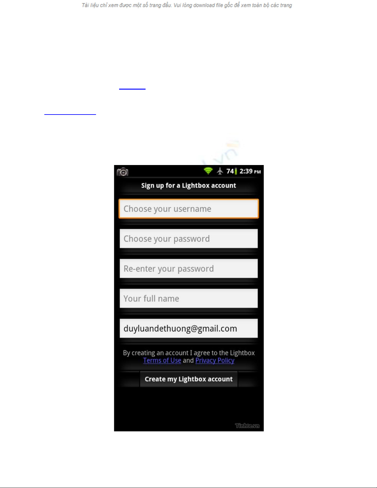 Ở lần đầu khởi chạy, bạn cần phải đăng kí mt tài khoản Lightbox cho riêng mình. Tđây v