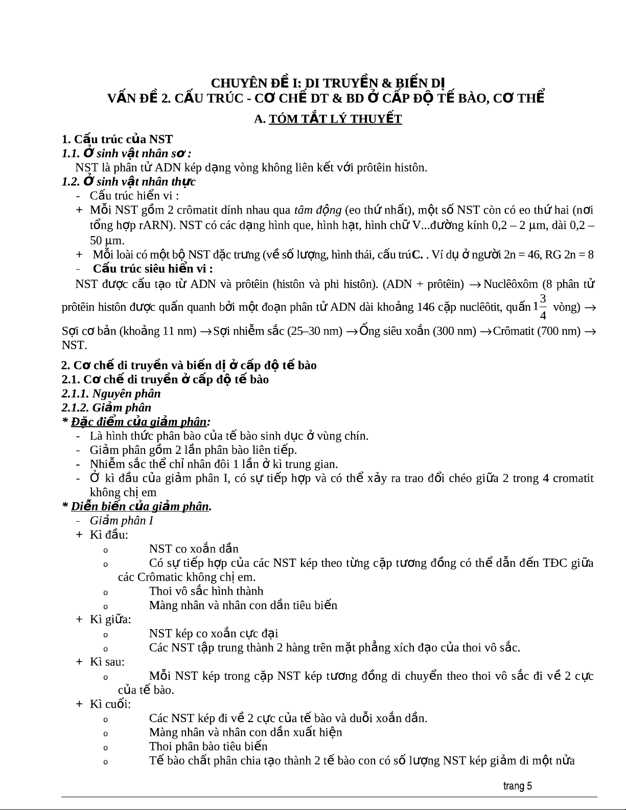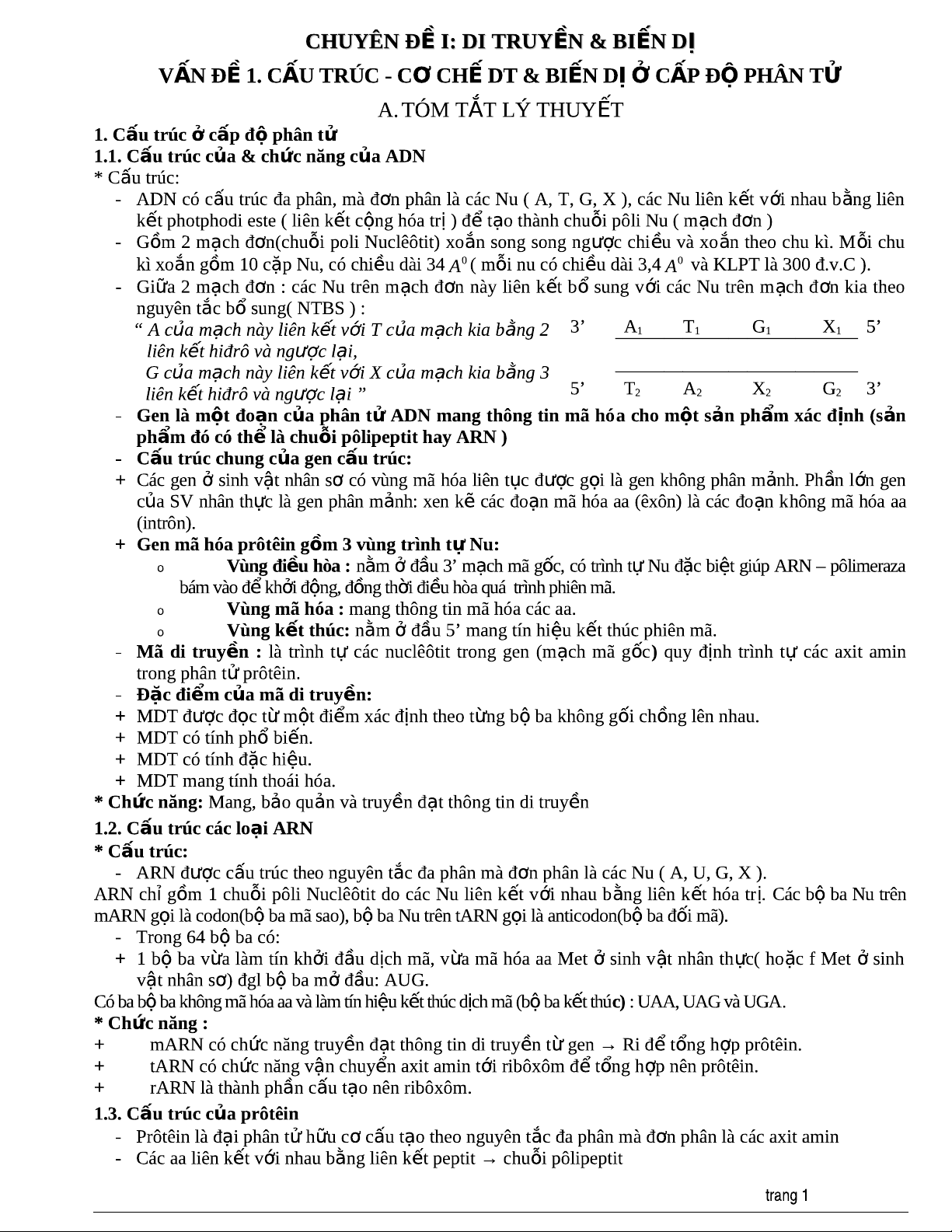 CHUYÊN ĐỀ 1 : DI TRUYỀN VÀ BIẾN DỊ