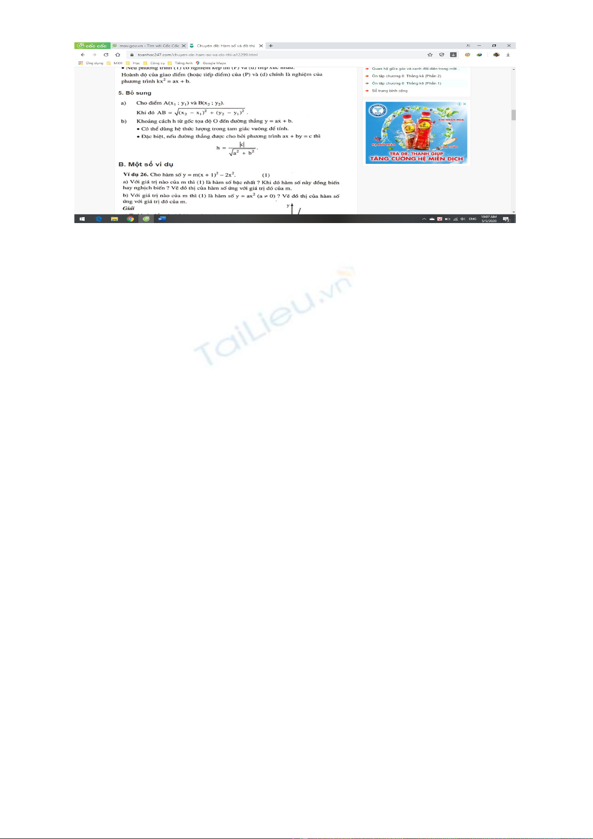 b) Tìm giá tr c a m đ đ th c a hàm s song song v i đng th ng (d): y=ị ủ ể ồ ị ủ ố ớ ườ ẳ