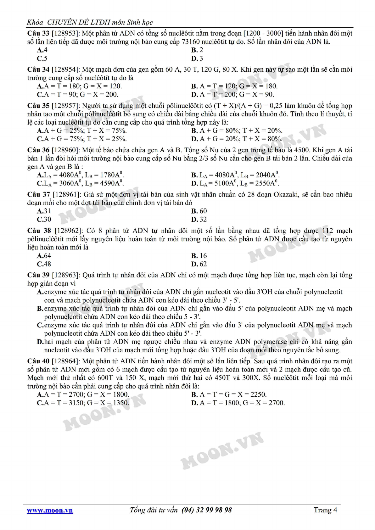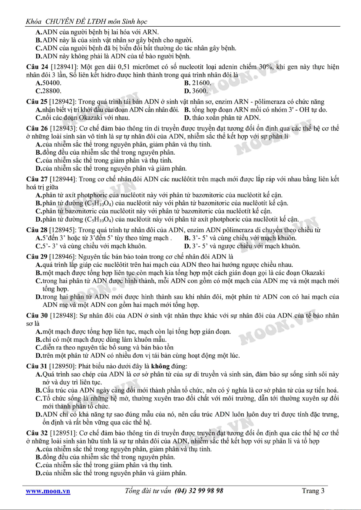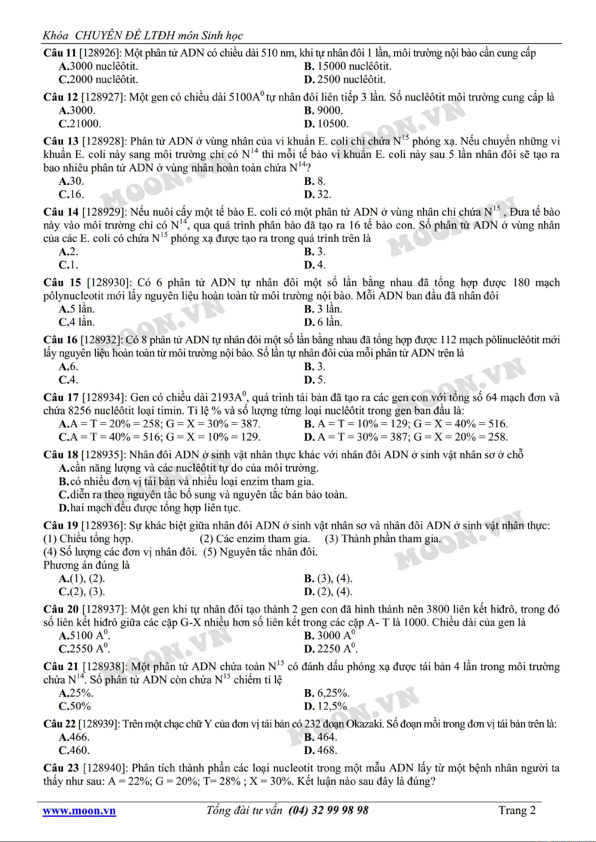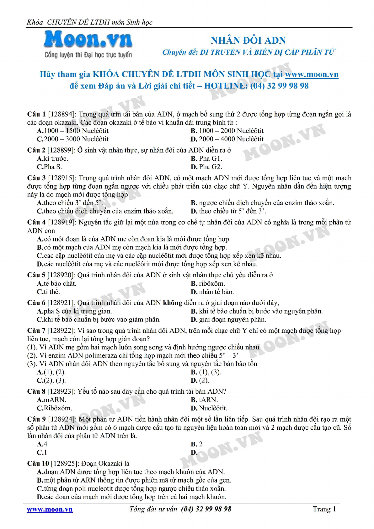 Tài liệu "Chuyên đề LTĐH môn Sinh học: Nhân đôi ADN" gồm 40 câu hỏi lý thuyết và bài tập với hình thức trắc nghiệm. Mời các bạn cùng tham khảo để ôn tập, bổ trợ kiến thức và chuẩn bị tốt cho kỳ thi Đại học quan trọng.
