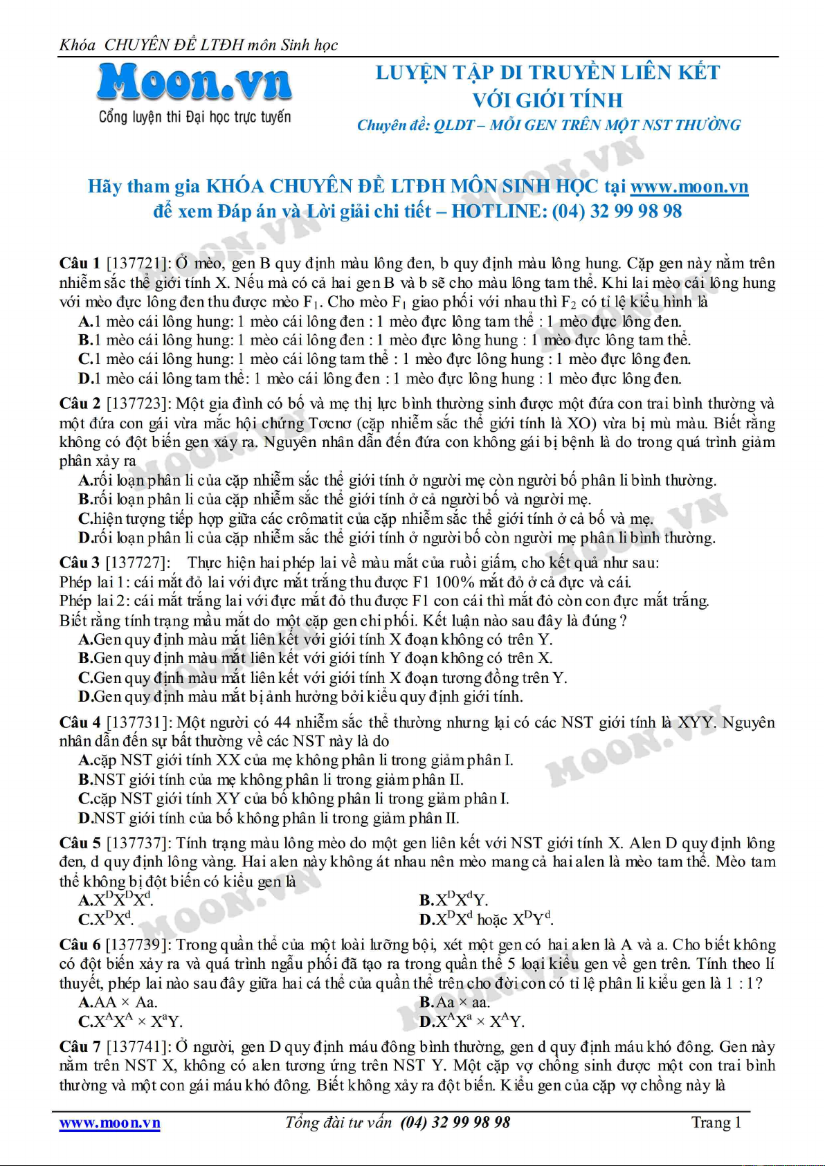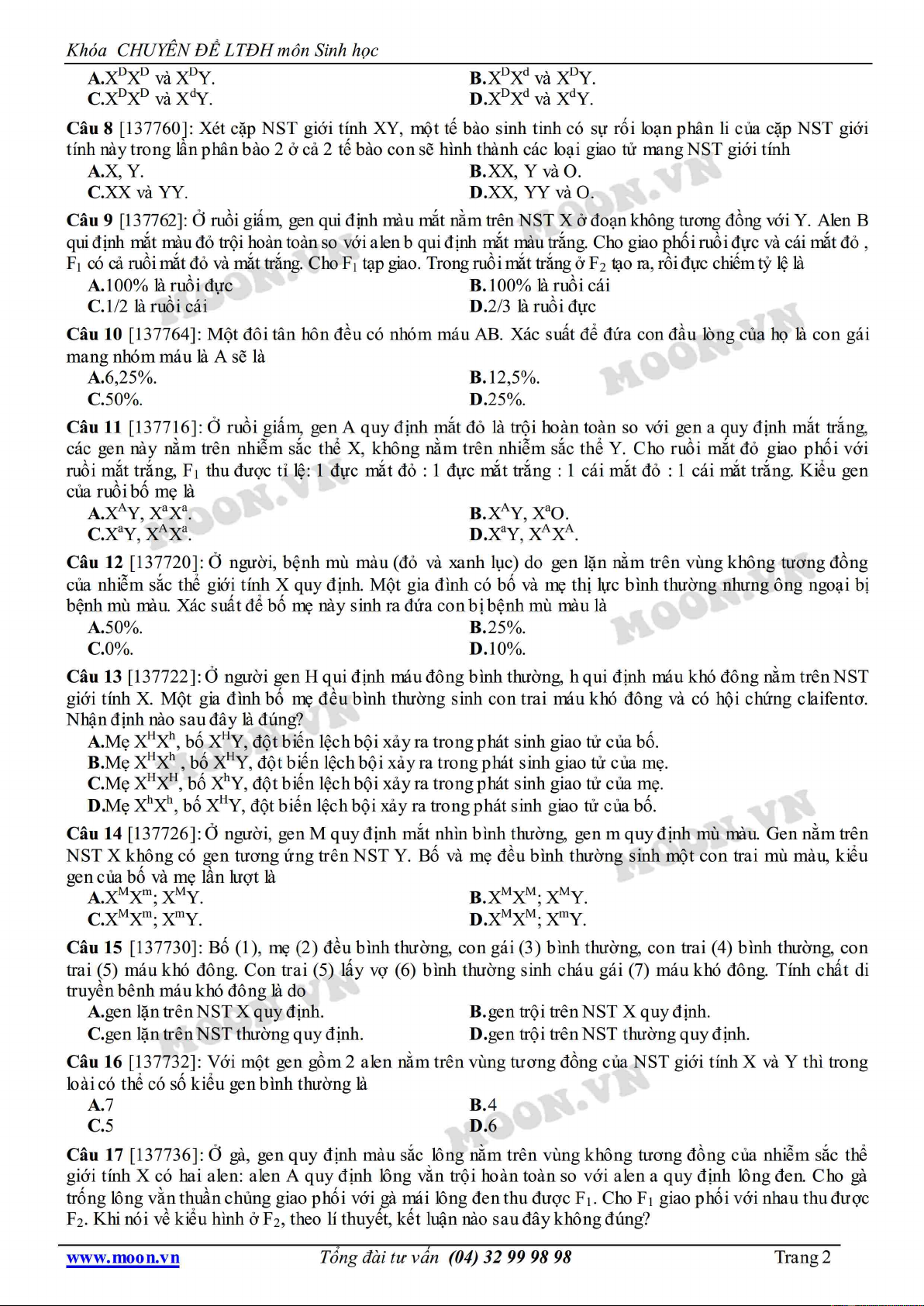 Chuyên đề LTĐH môn Sinh học: Luyện tập di truyền liên kết giới tính