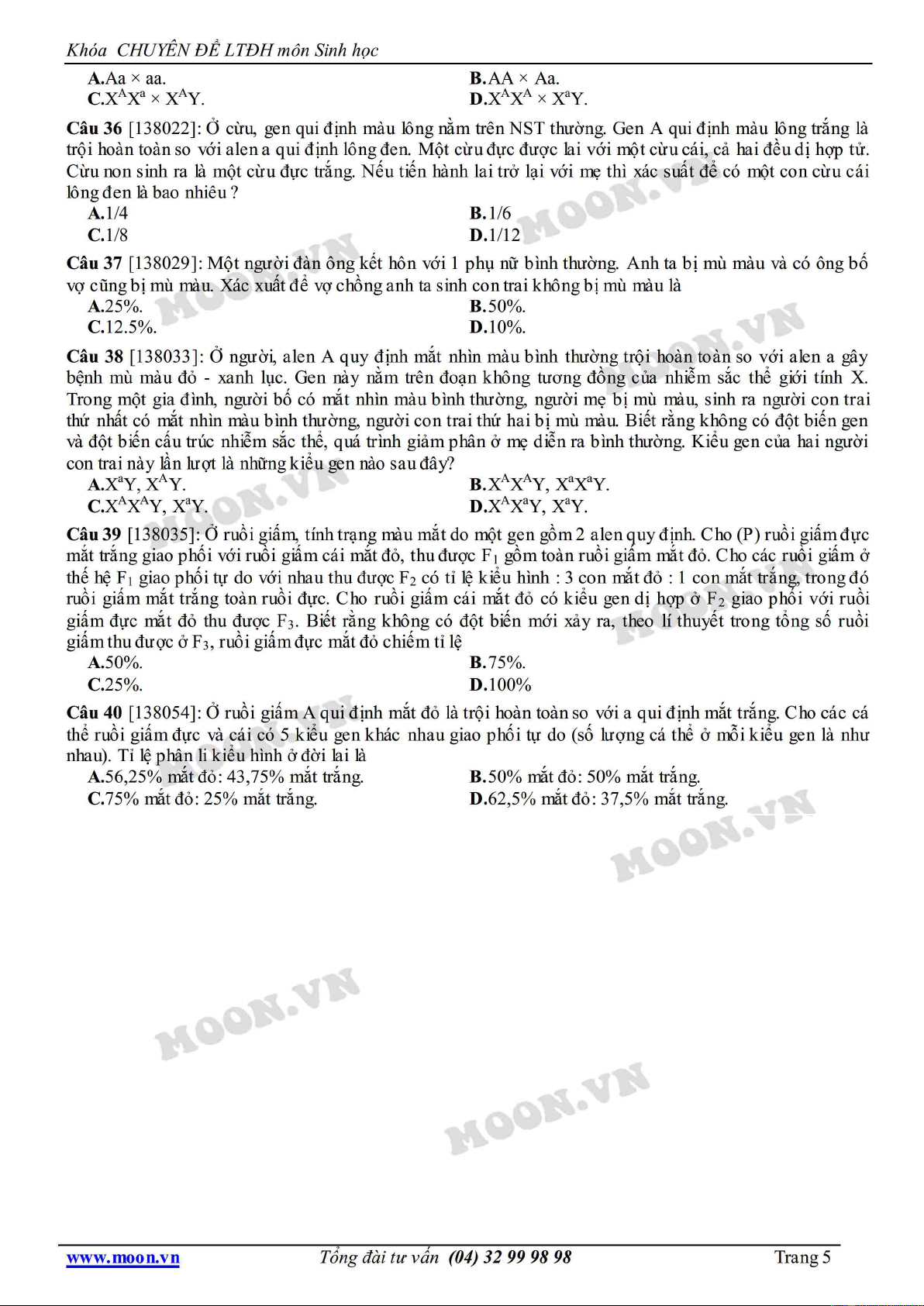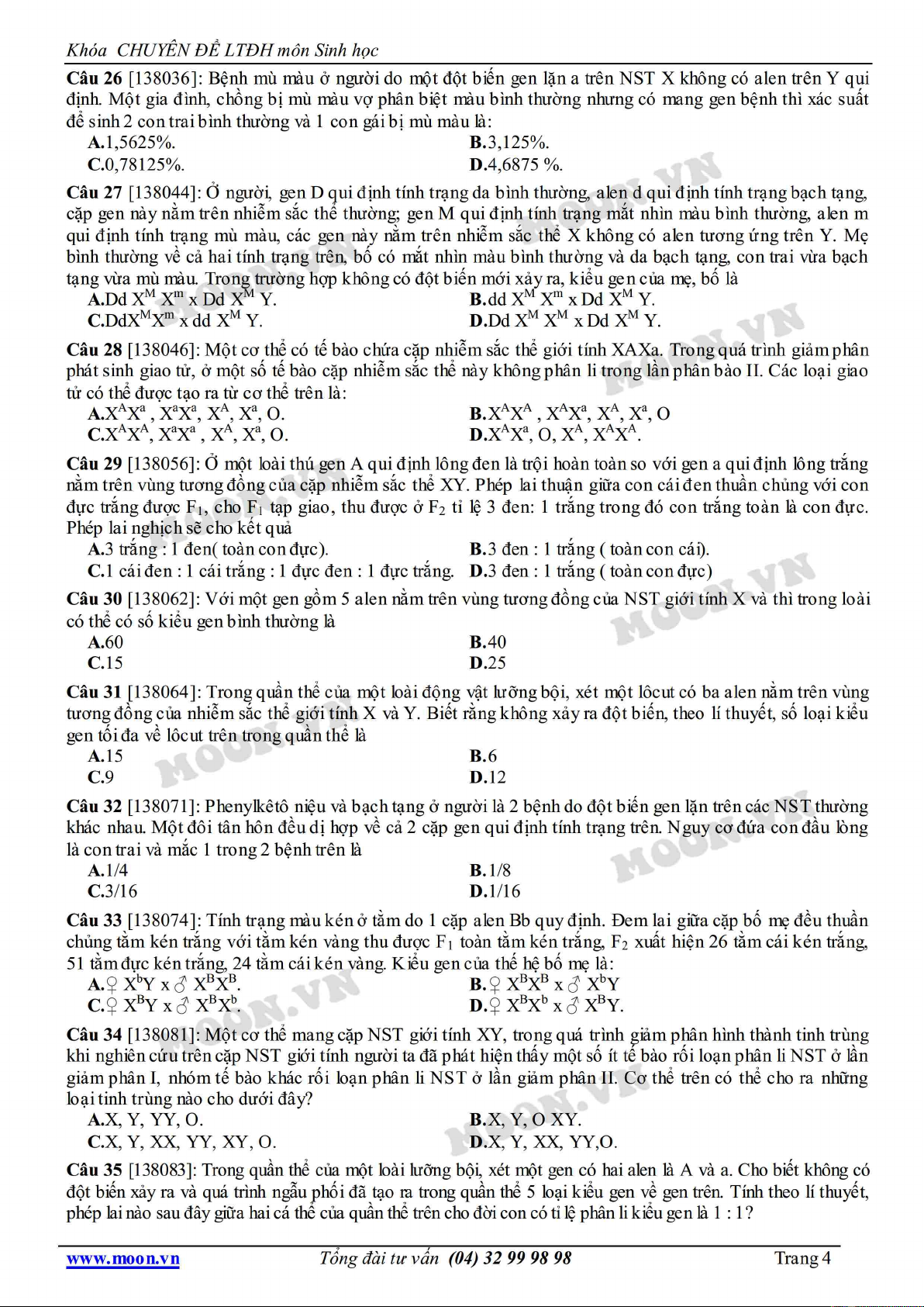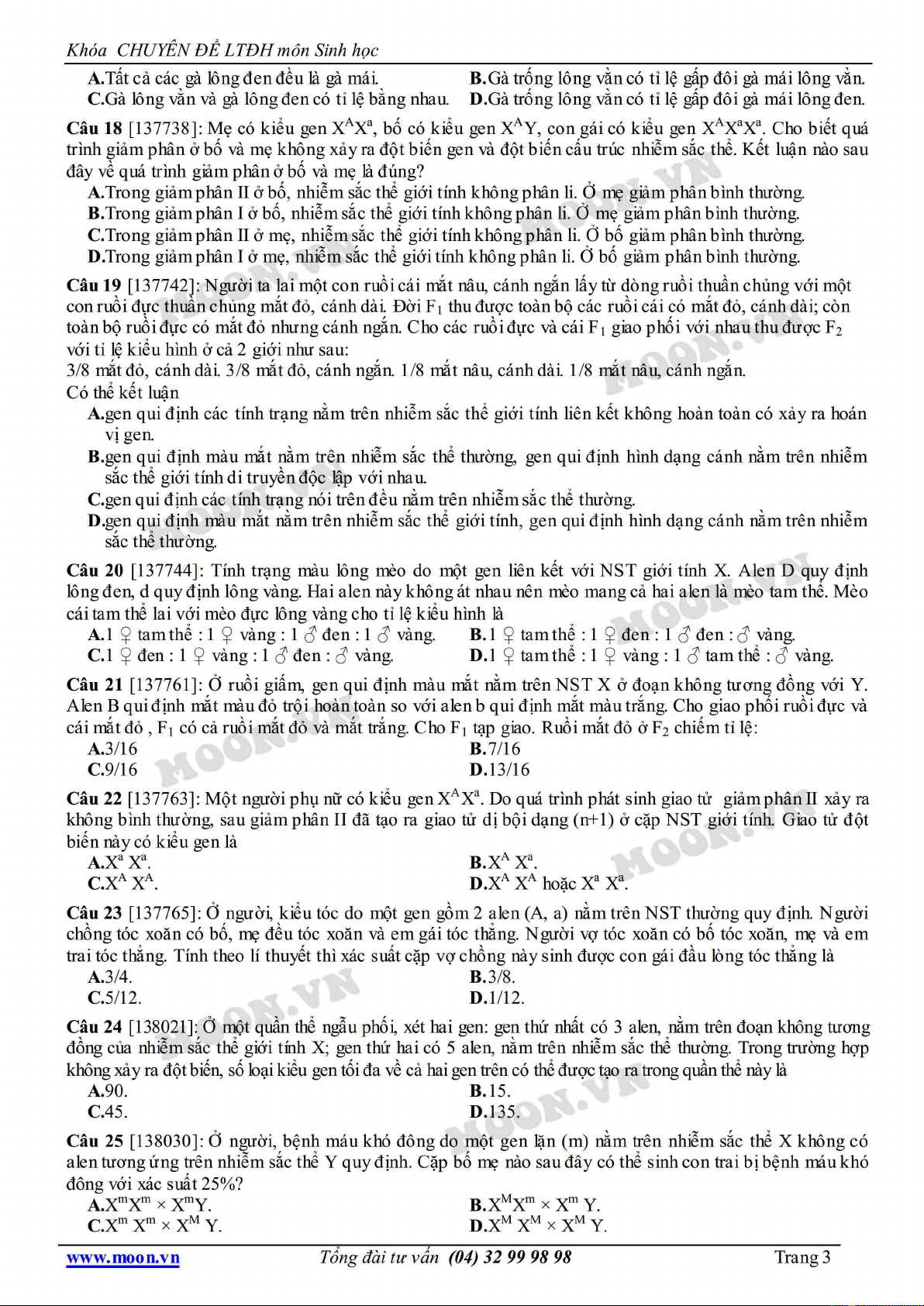 Chuyên đề LTĐH môn Sinh học: Luyện tập di truyền liên kết giới tính gồm 40 cấu hỏi lý thuyết và bài tập với hình thức trắc nghiệm. Mời các bạn cùng tham khảo để ôn tập, bổ trợ kiến thức và chuẩn bị tốt cho kỳ thi Đại học quan trọng.
