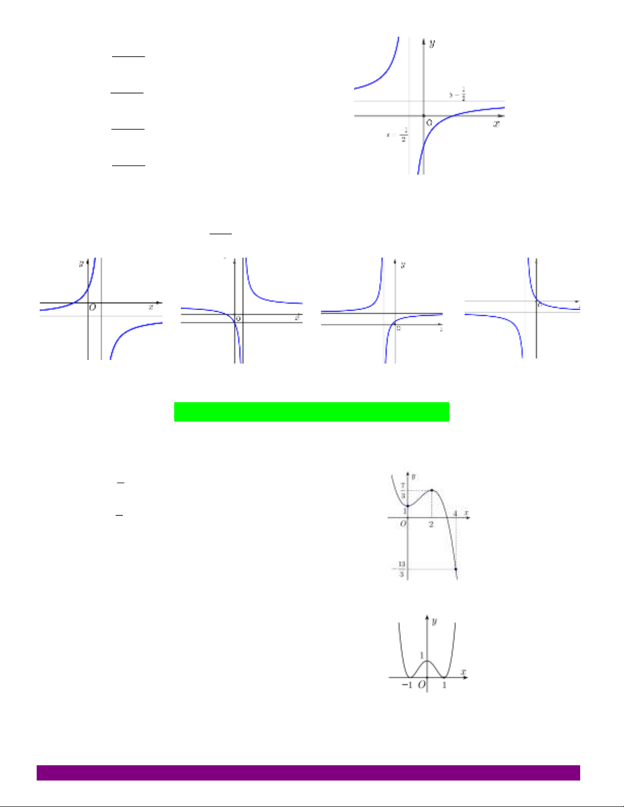 Câu 1: Bảng biến thiên sau là của hàm số nào?