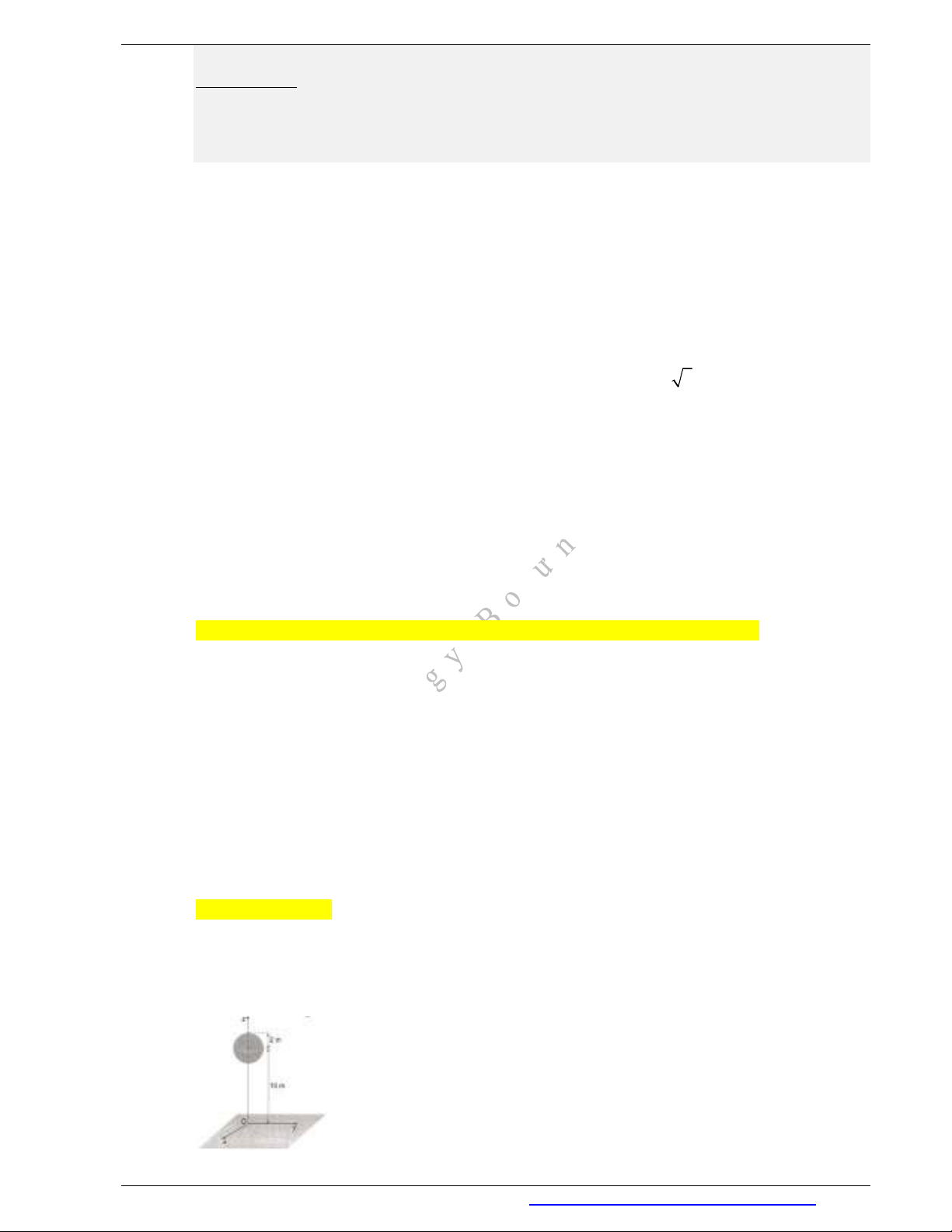 Câu 32. Một quả bóng hình cầu có bán kính 2 m được treo lơ lửng trên một mặt đất phẳng. Tâm quả