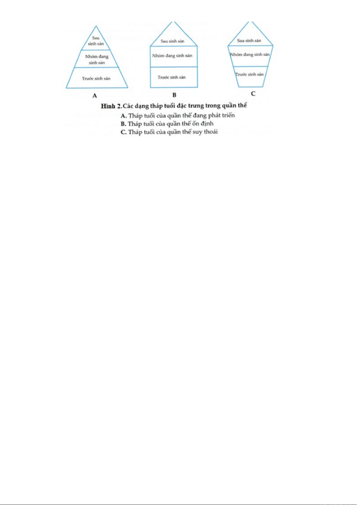 Tháp tuổi chỉ ra 3 trạng thái phát triển số lượng của quần thể: quần thể đang phát triển (quần thể trẻ),