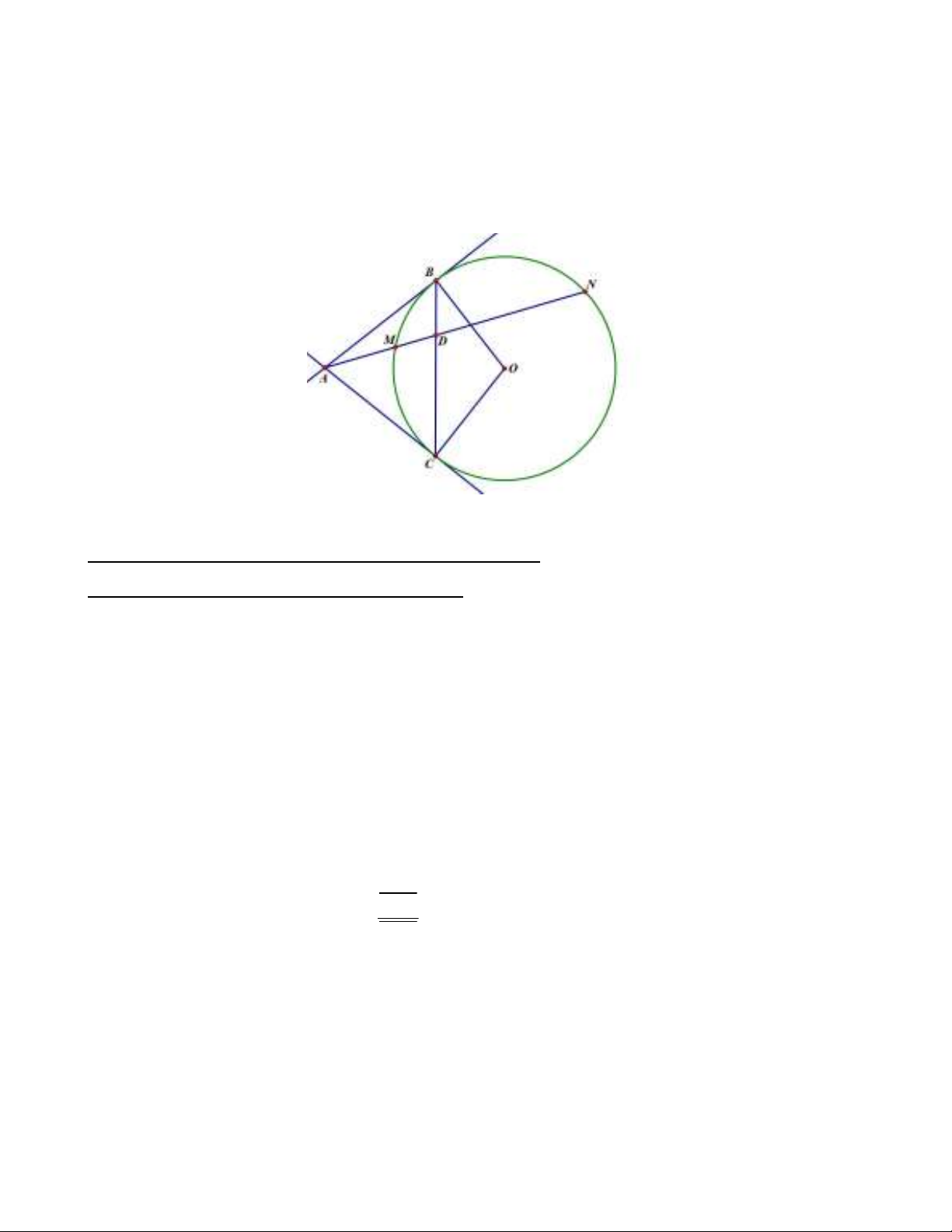 . Một đường thẳng qua A, cắt đường tròn (O) tại M, N và cắt AB tại D. Khi