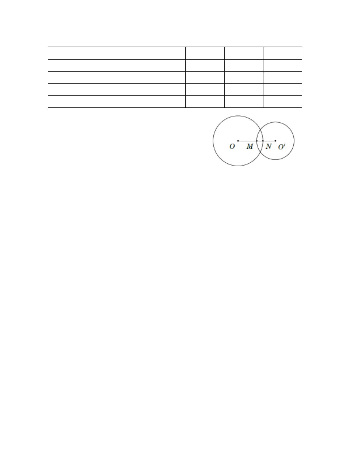 Vị trí tương đối của hai đường tròn (O;R) và (O’;r) vói