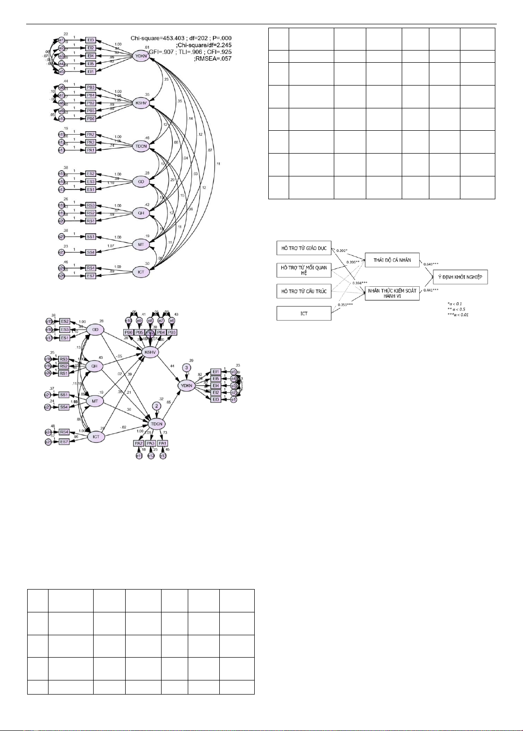quyết định Ý định khởi nghiệp. Ngoài ra mô hình SEM cũng chỉ ra