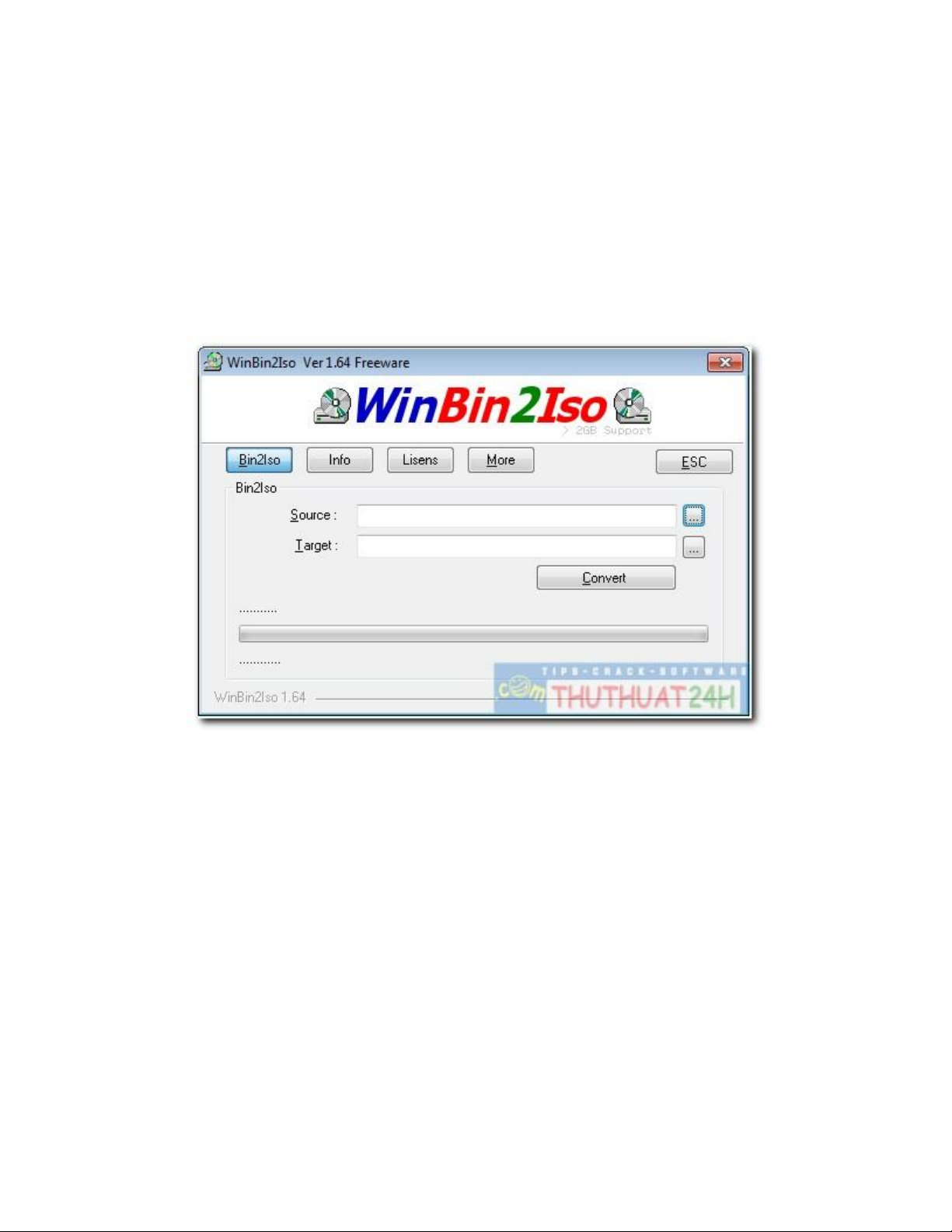 đúp chuột vào tập tin WinBin2Iso.exe để bắt đầu các