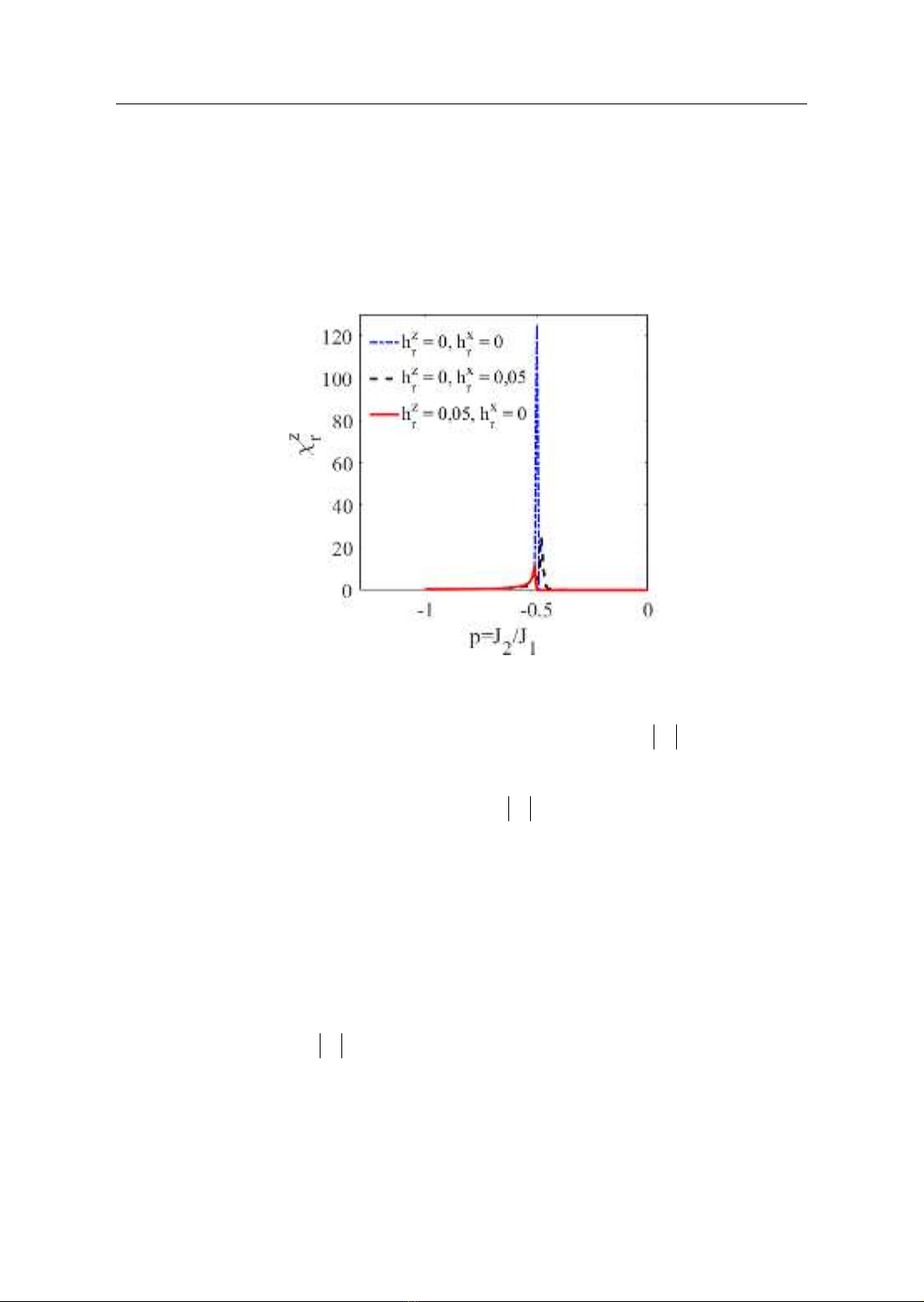 Hình 4: Sự phụ thuộc vào tham số cạnh tranh tương tác p của độ cảm từ dọc