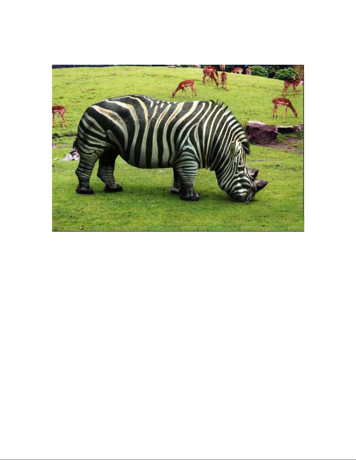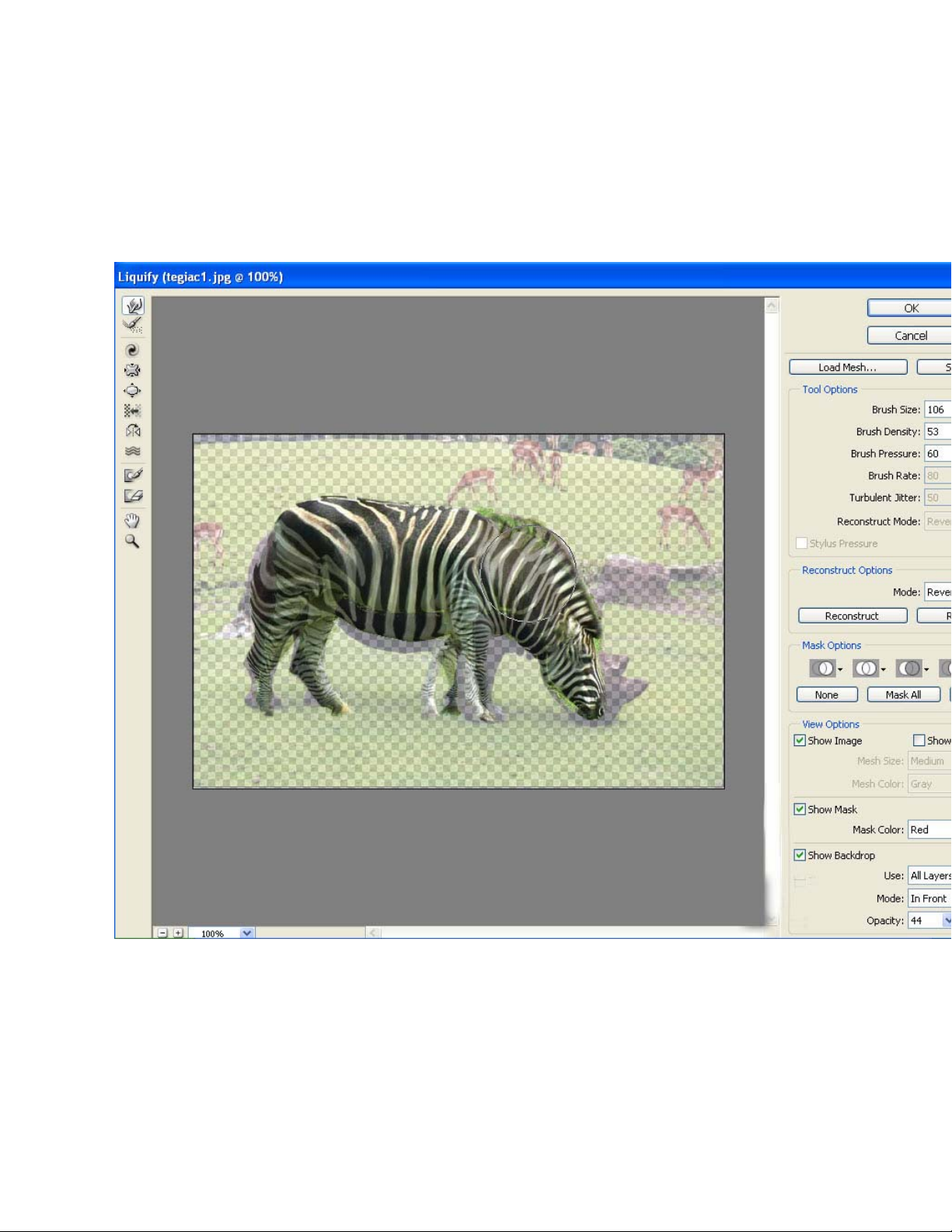 Áp dụng công cụ Liquify Kéo hình con ngựa vằn sao cho nó khớp vào hình con tê giác