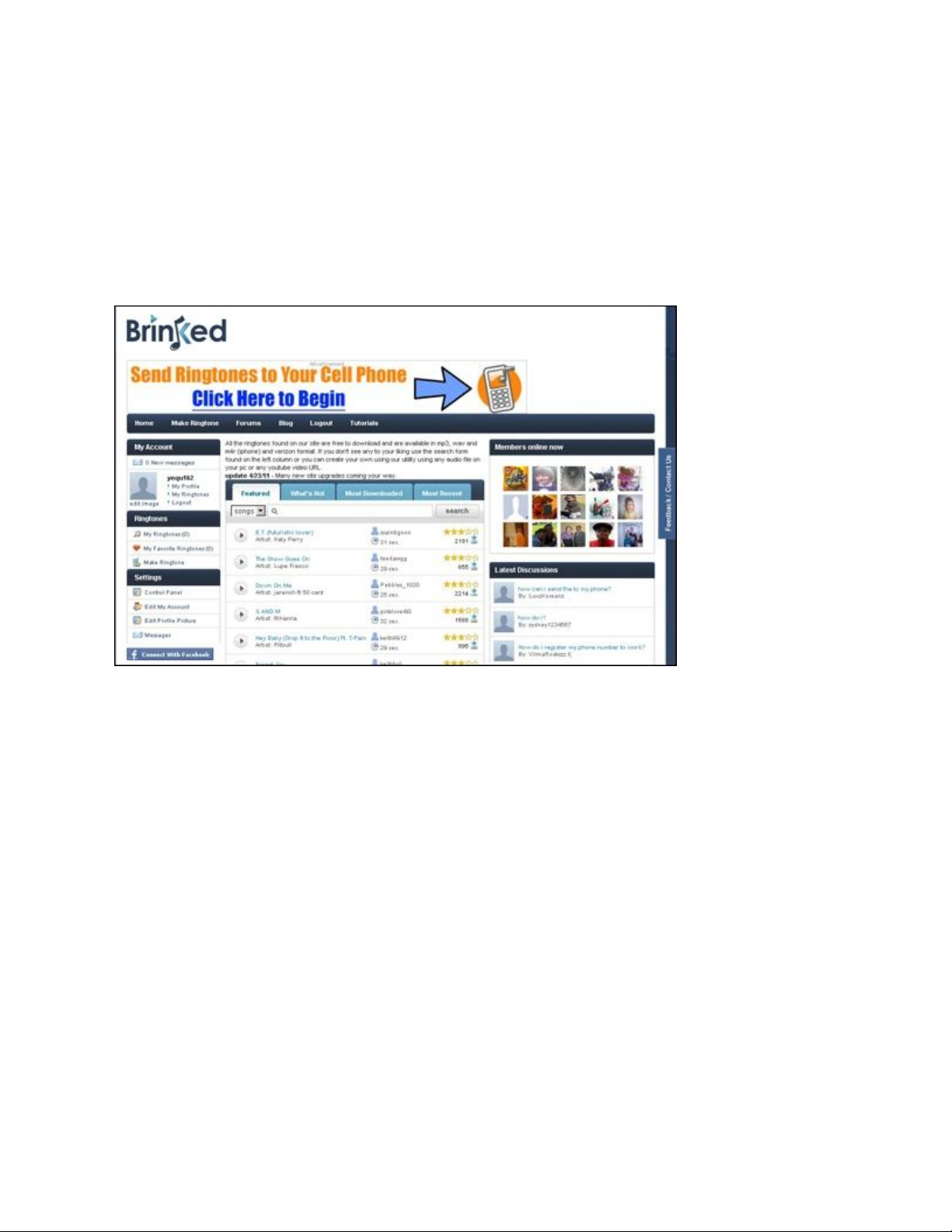 Giao diện của Brinked.com rất đơn giản, danh sách các nhạc chuông mới nhất sẽ hiển
