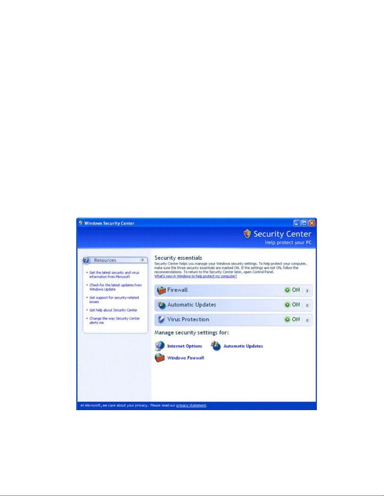 Automatic Updates. Security Center kiểm tra để bảo đảm Automatic