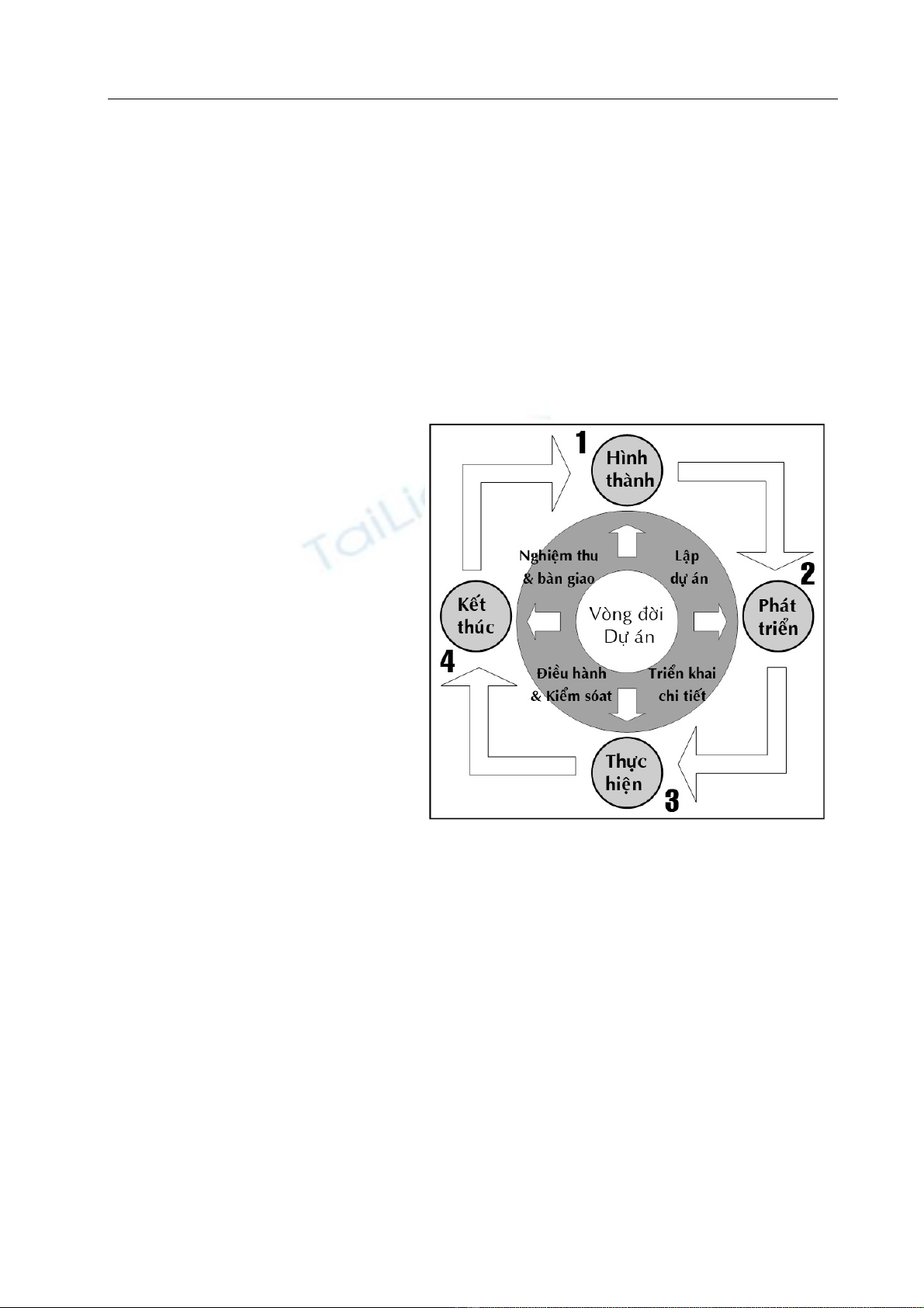 án, Giai đoạn phát triển, Giai đoạn thực hiện & quản lý, Giai đoạn kết thúc (Hình 1).