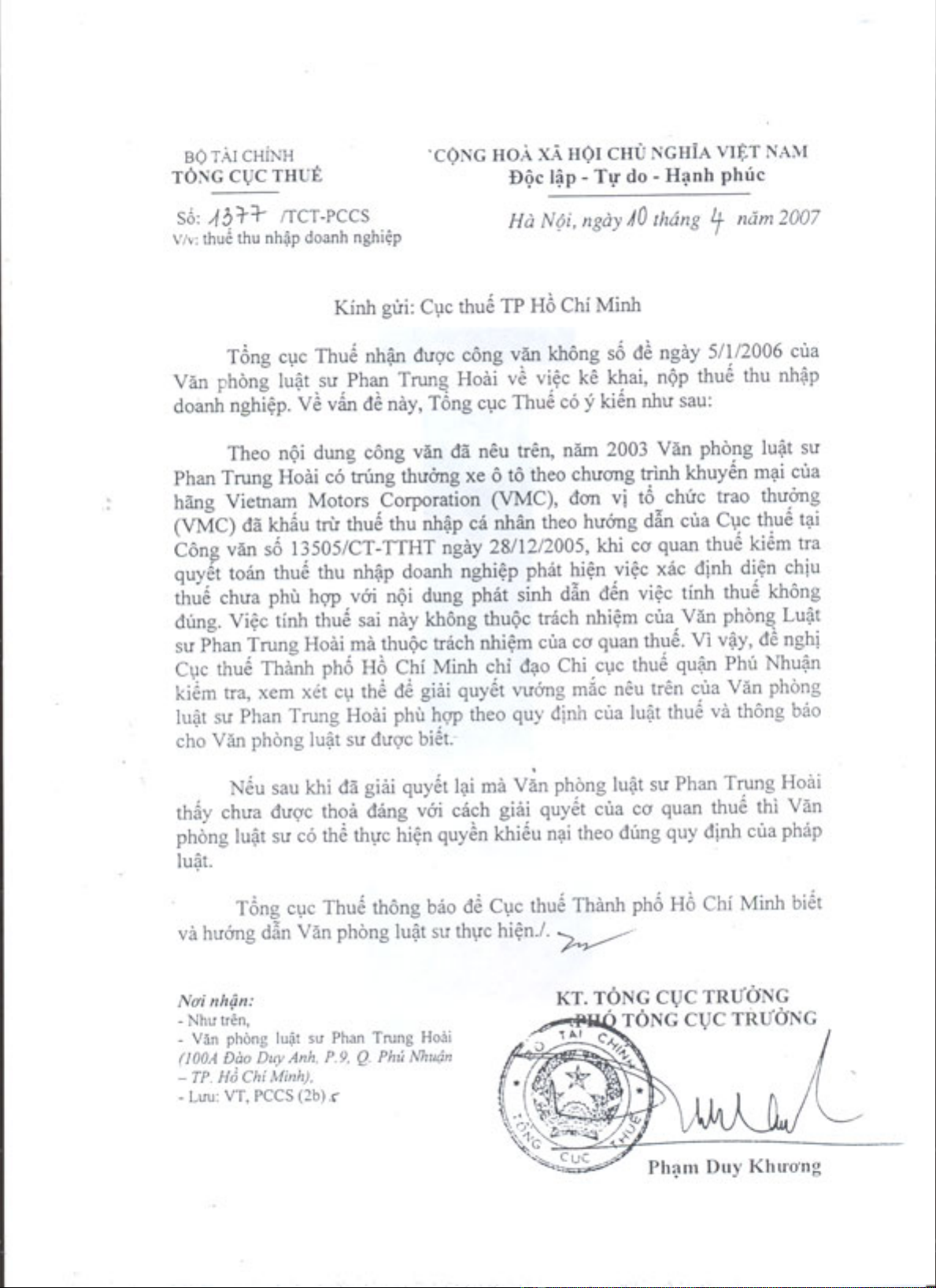 Công văn 1377/TCT-PCCS của Tổng cục Thuế