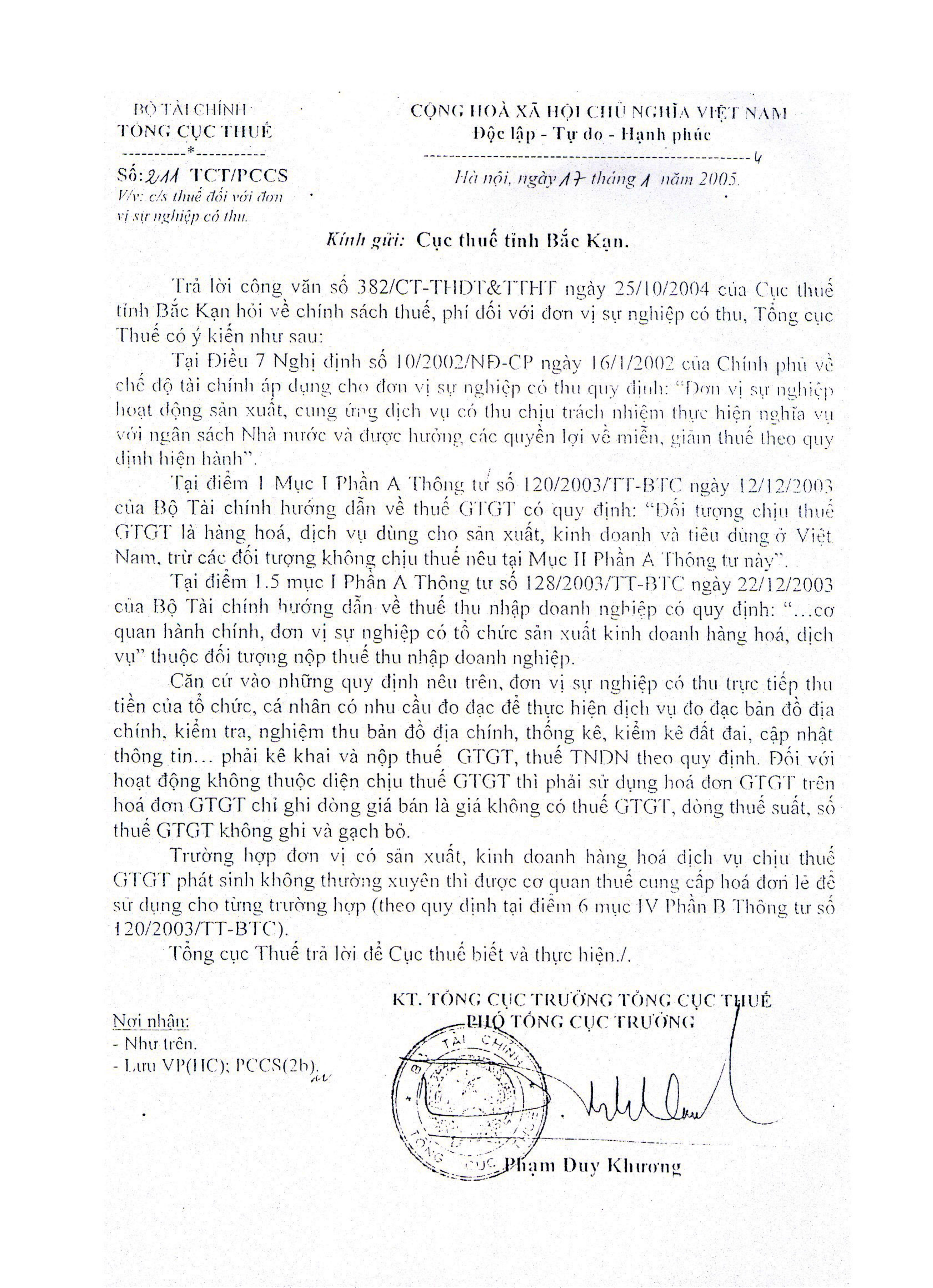 Công văn 211/TCT/PCCS của Tổng cục Thuế