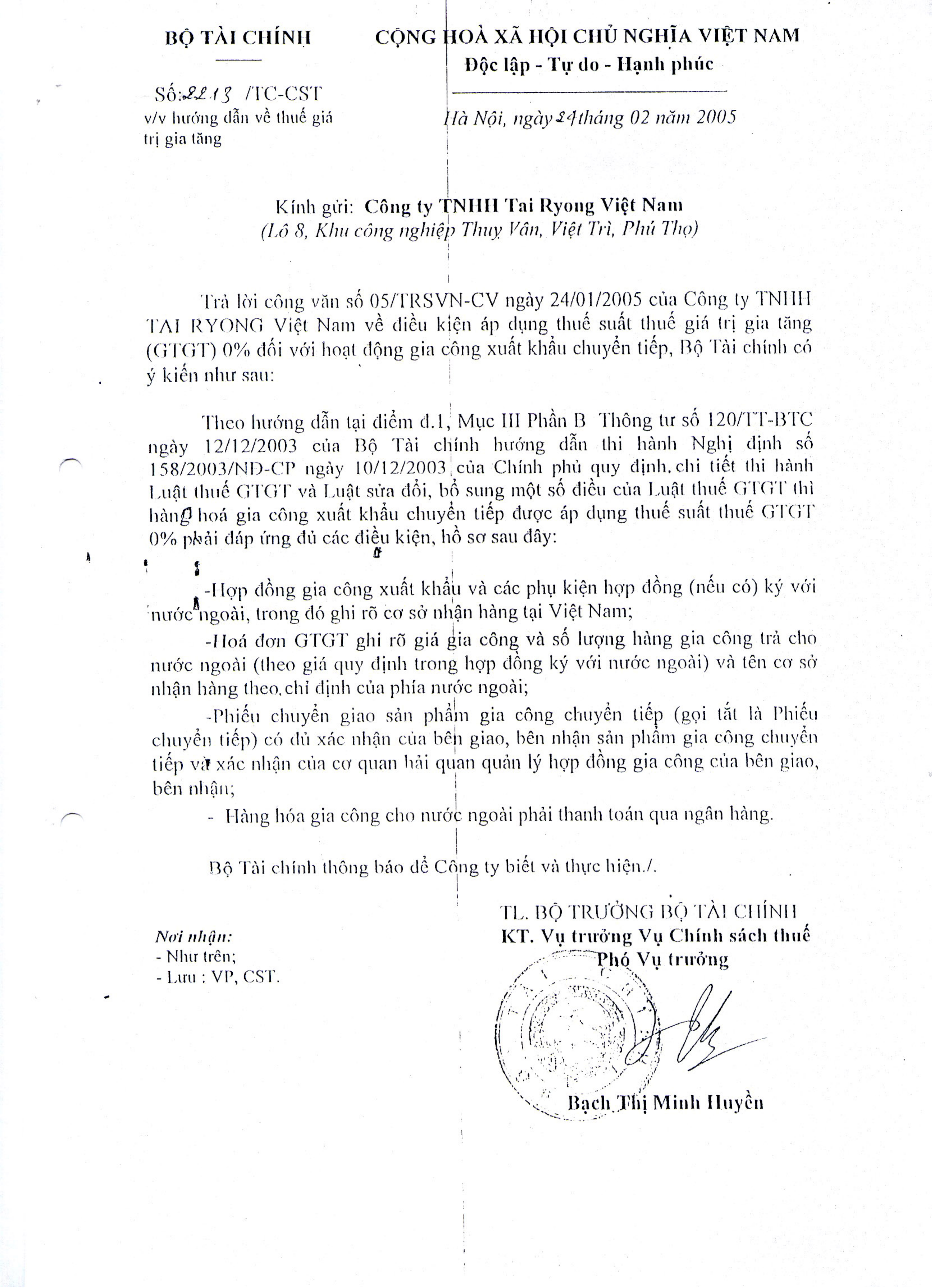 Công văn 2213/TC/CST của Bộ Tài chính về việc hướng dẫn về thuế giá trị gia tăng