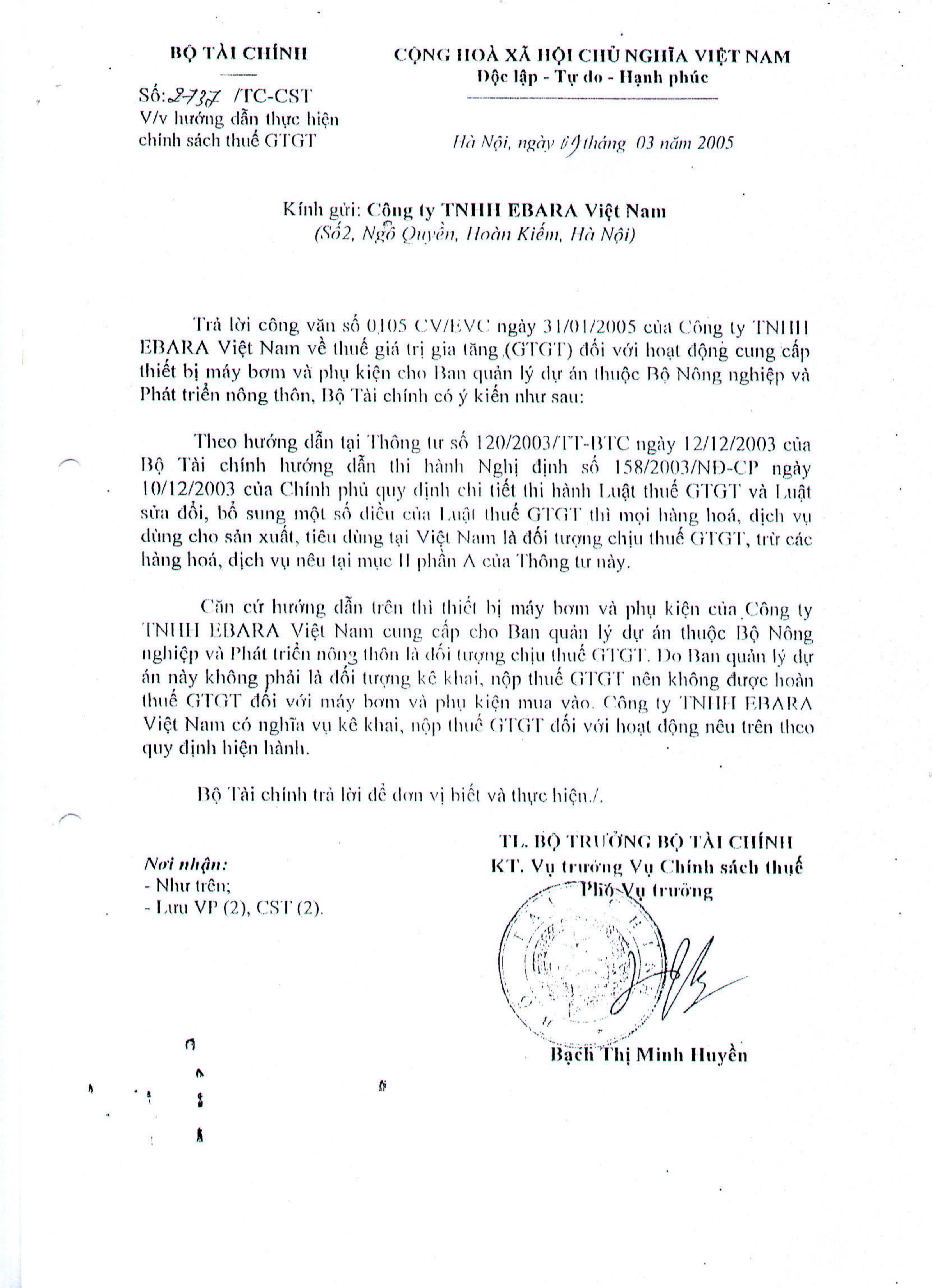 Công văn 2737/TC/CST của Bộ Tài chính về việc hướng dẫn thực hiện chính sách thuế GTGT