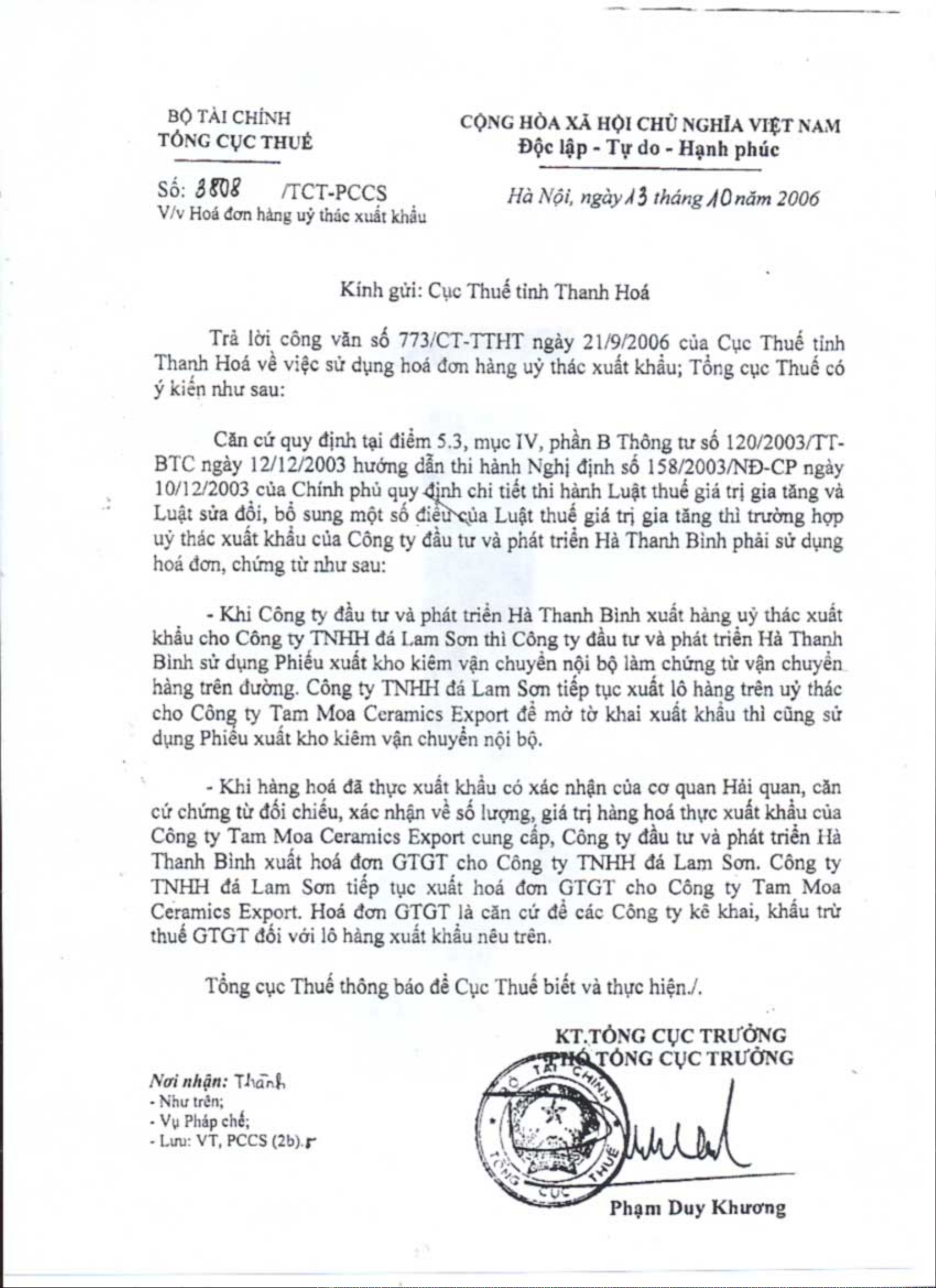 Công văn 3808/TCT-PCCS của Tổng cục Thuế về việc hoá đơn hàng uỷ thác xuất khẩu
