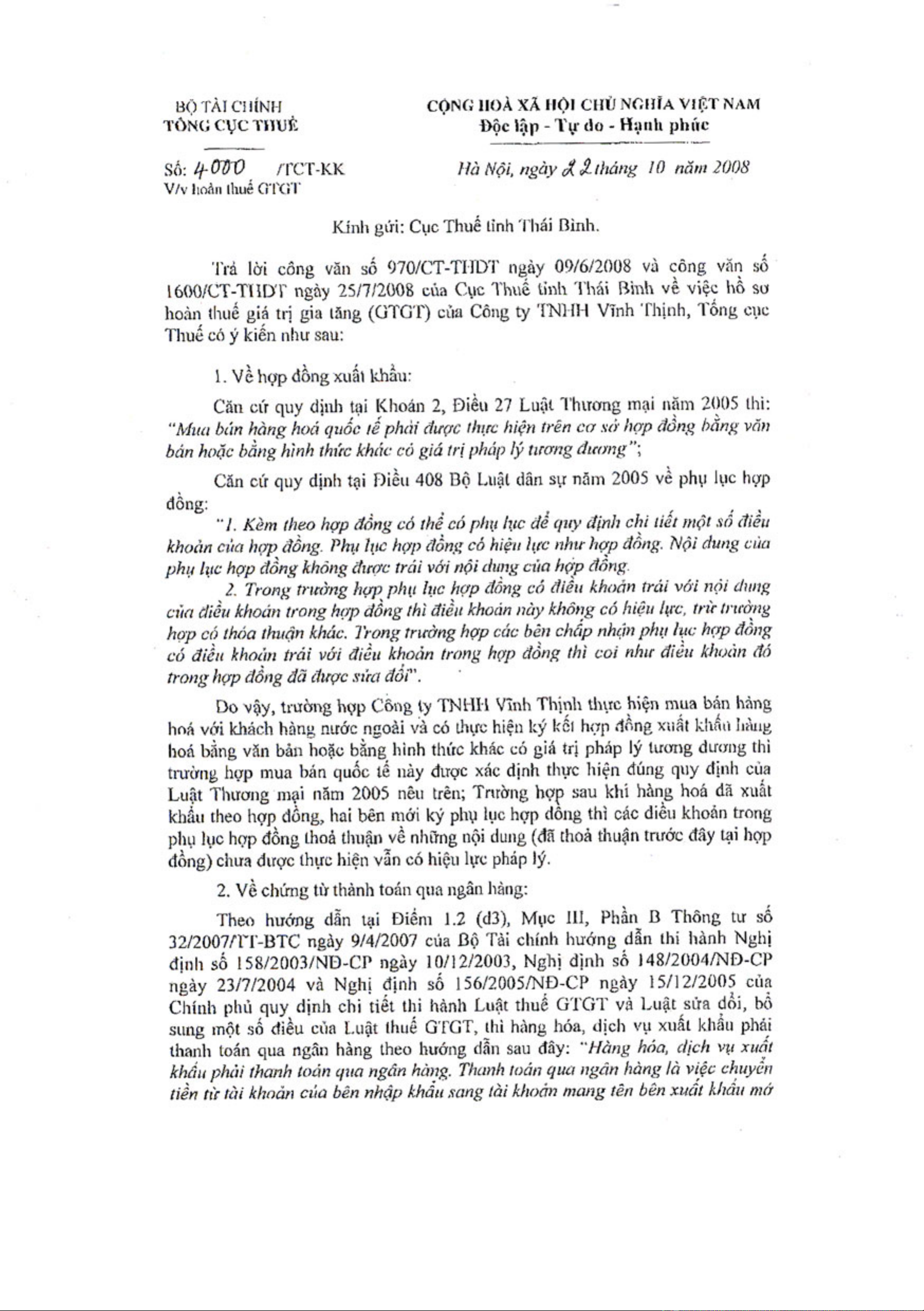 Công văn 4000/TCT-KK của Tổng cục Thuế về việc hoàn thuế giá trị gia tăng