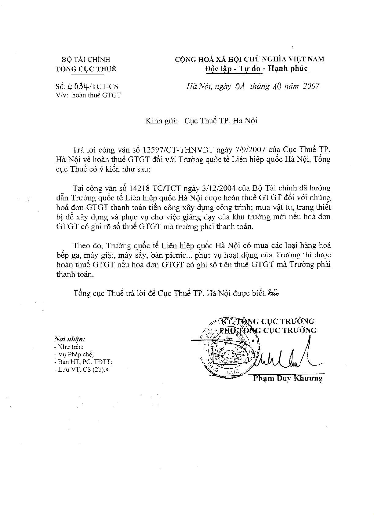 Công văn 4034/TCT-CS của Tổng cục Thuế về việc hoàn thuế giá trị gia tăng