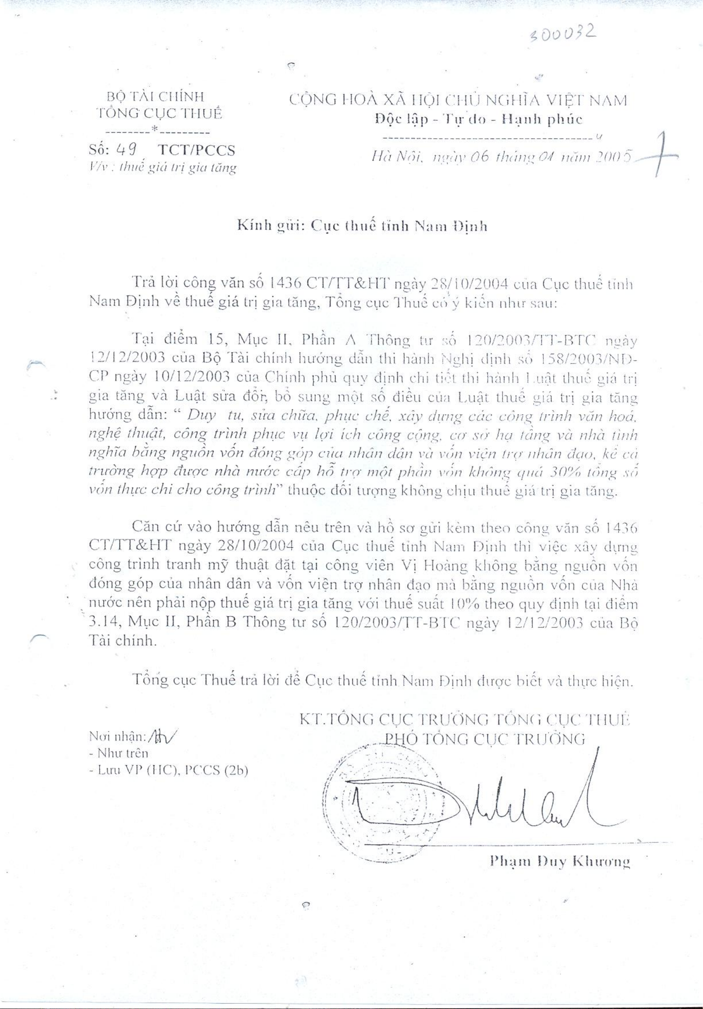 Công văn 49/TCT/PCCS của Tổng cục Thuế